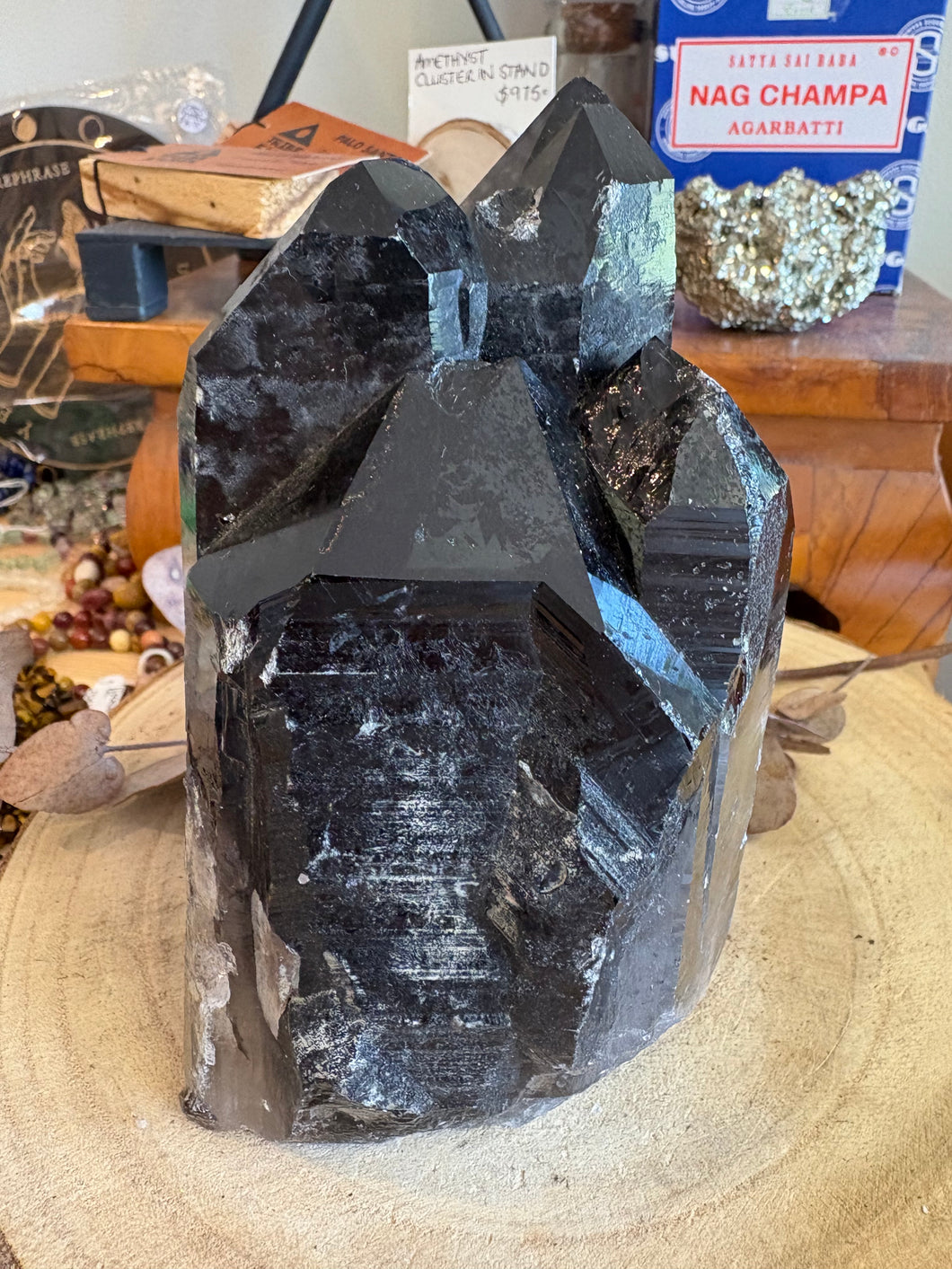 This stunning piece of Smoky Quartz has a castle like formation and is a very impressive piece.
