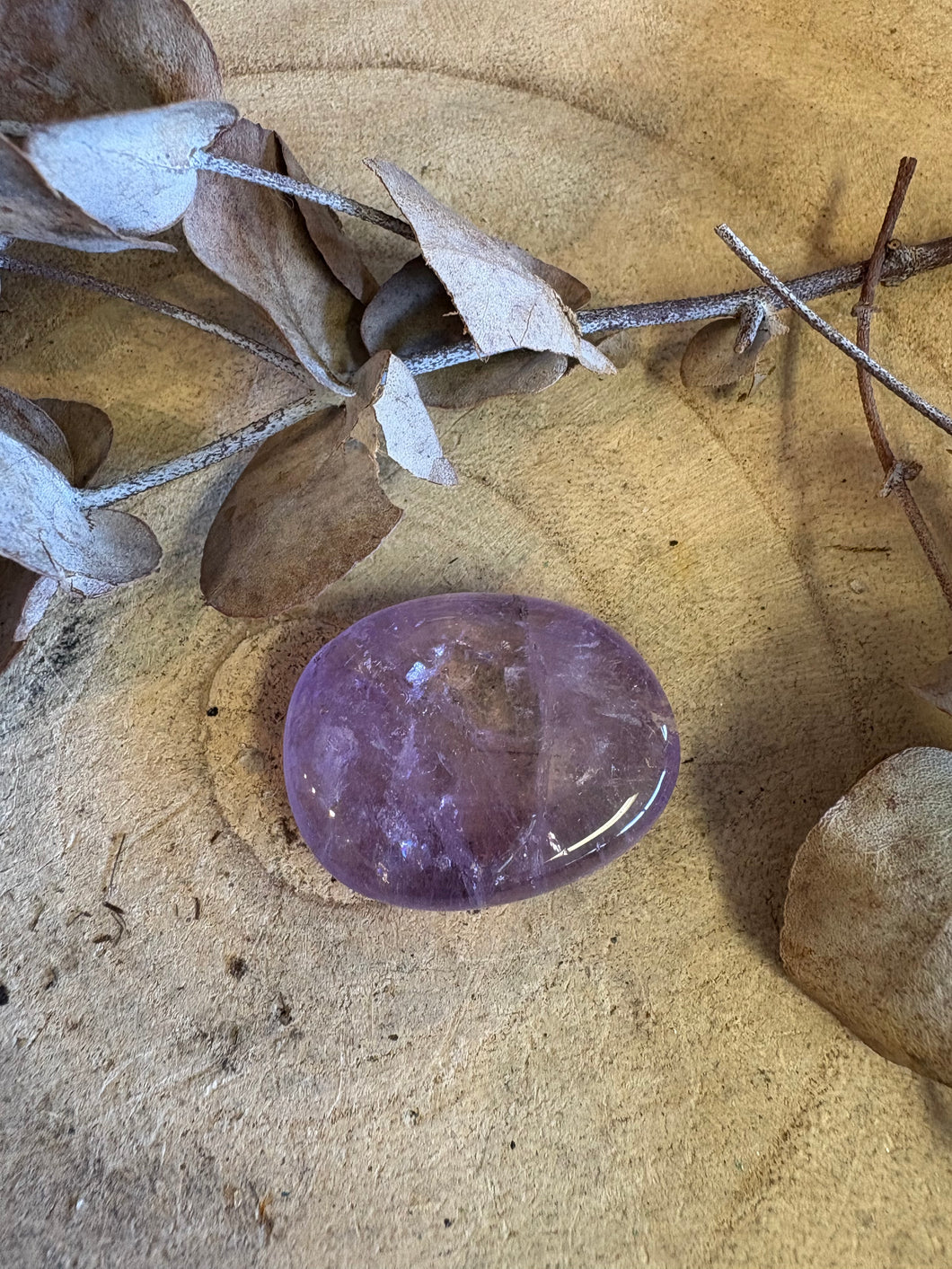 A sweet little smooth stone of spiritual Amethyst, perfect for pockets, pillowcases or handbags.