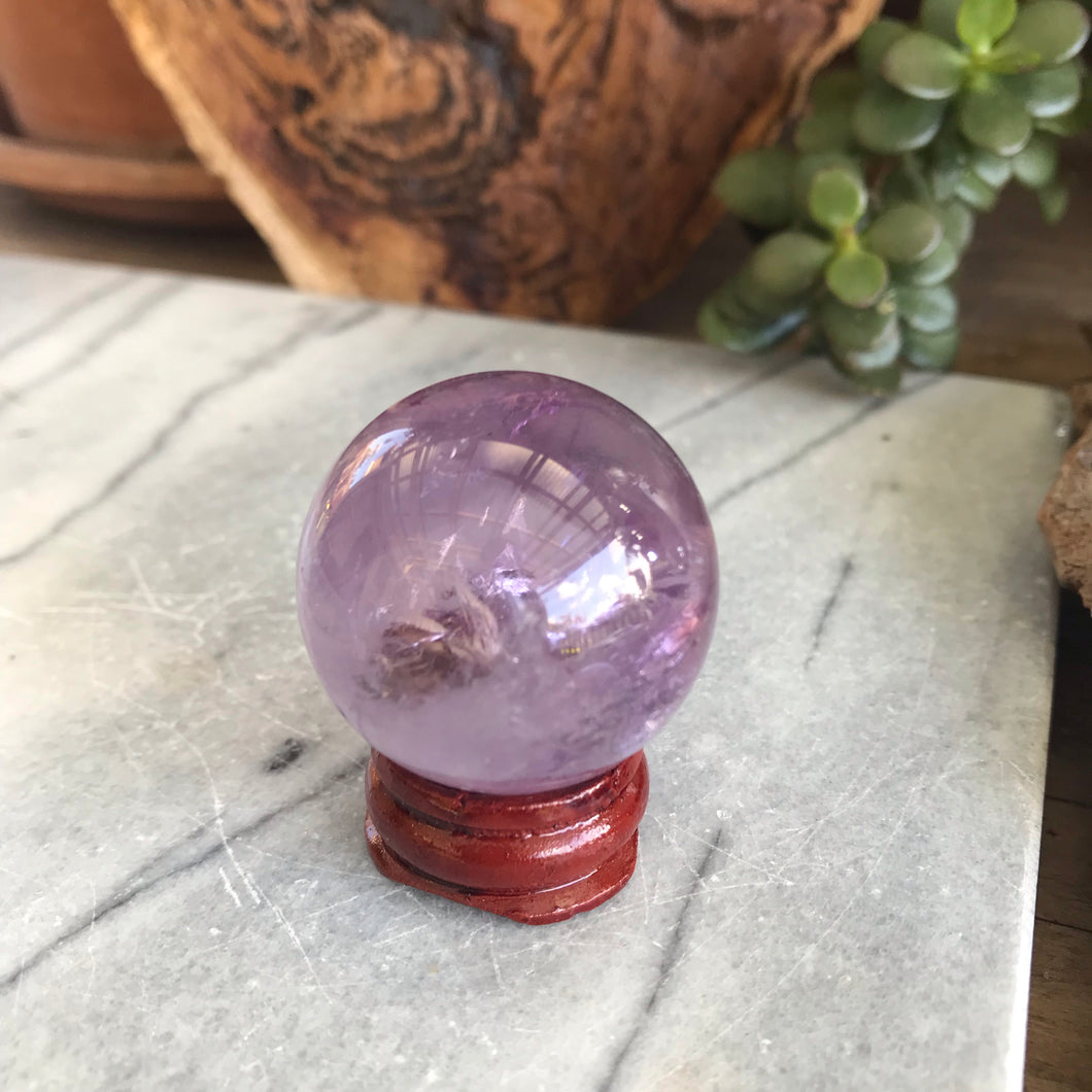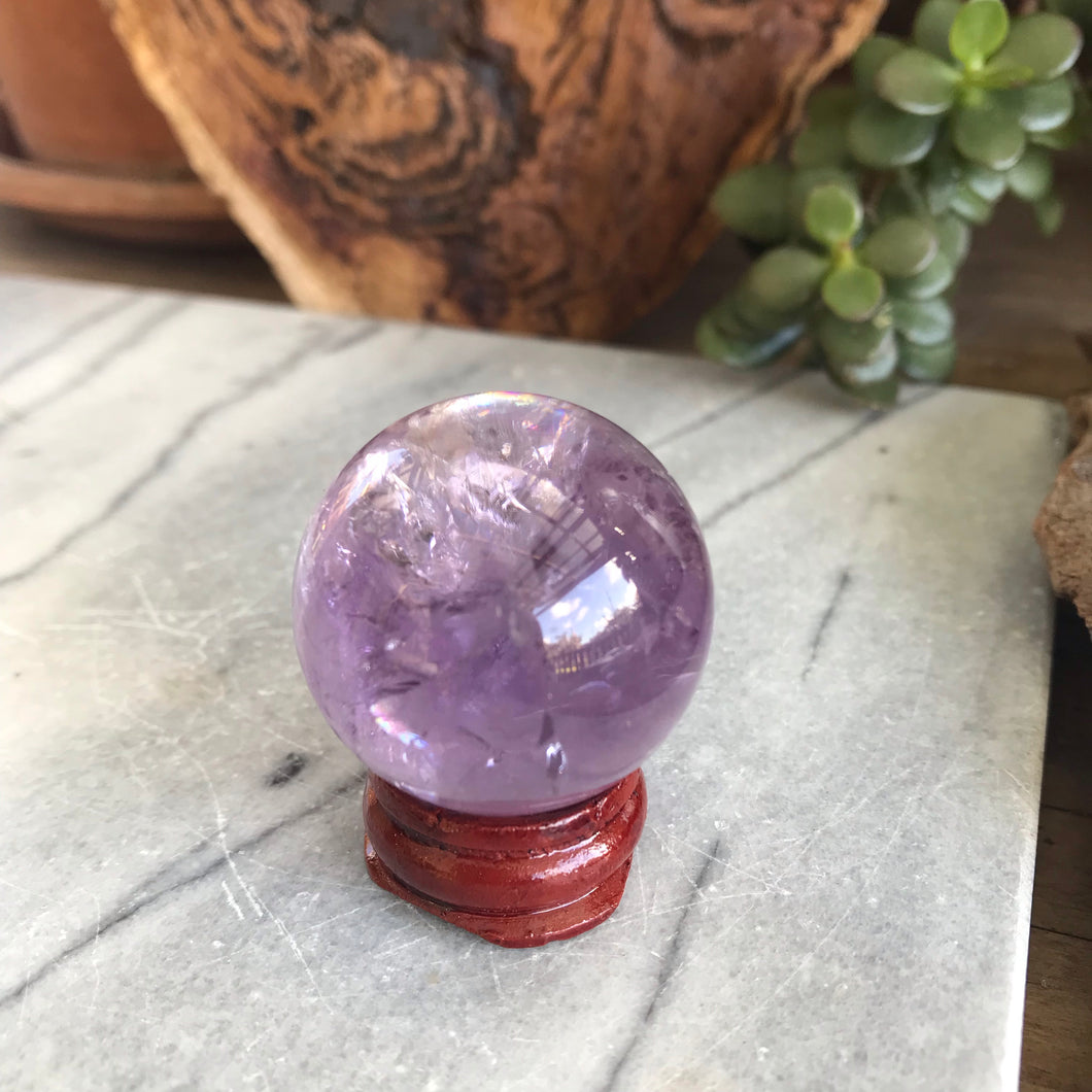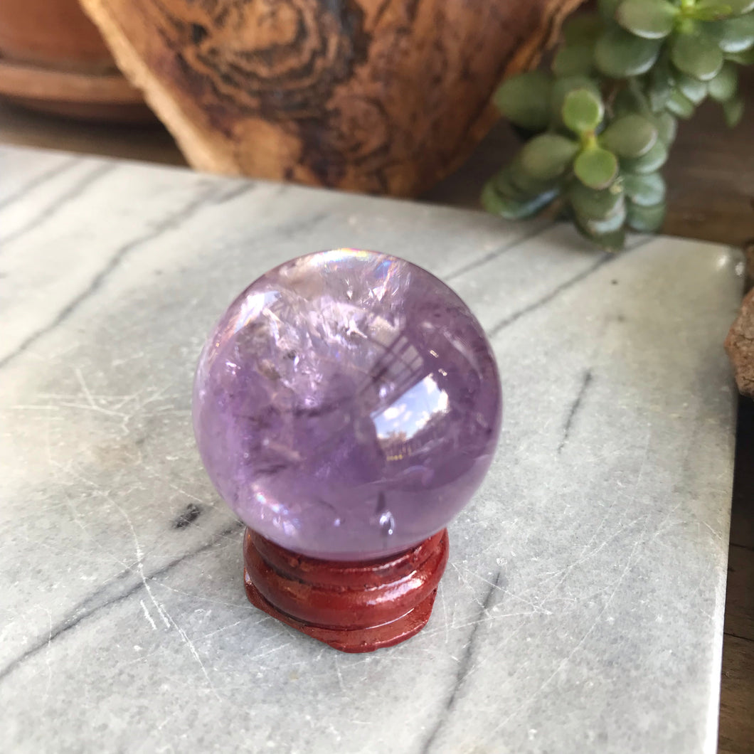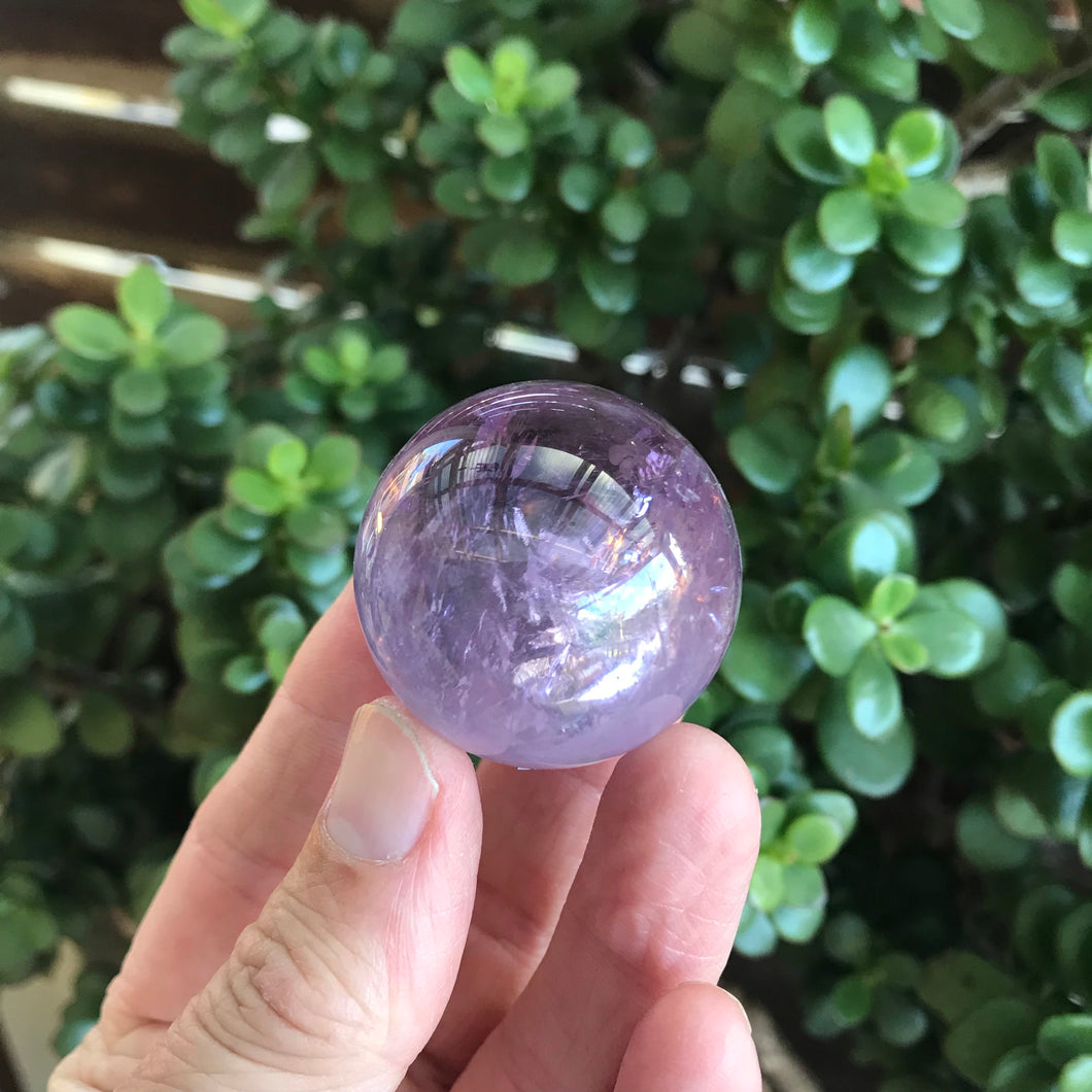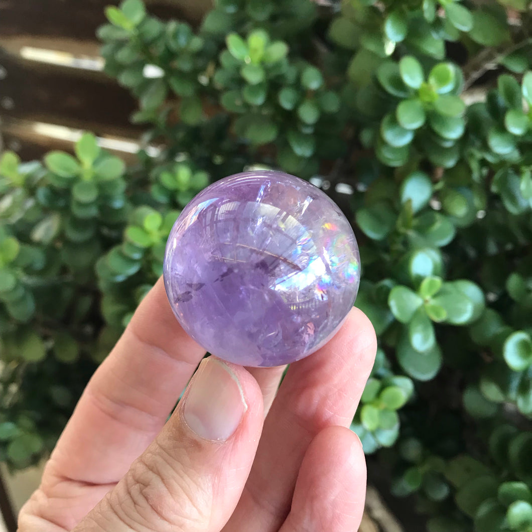 A lovely light filled Amethyst sphere from Brazil which is slightly larger and has the most amazing light and rainbows.