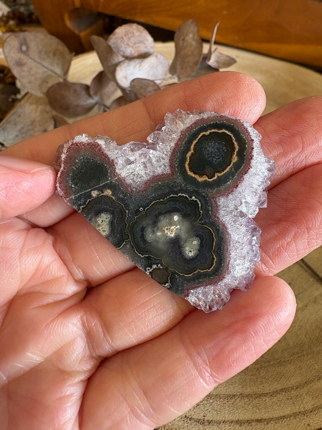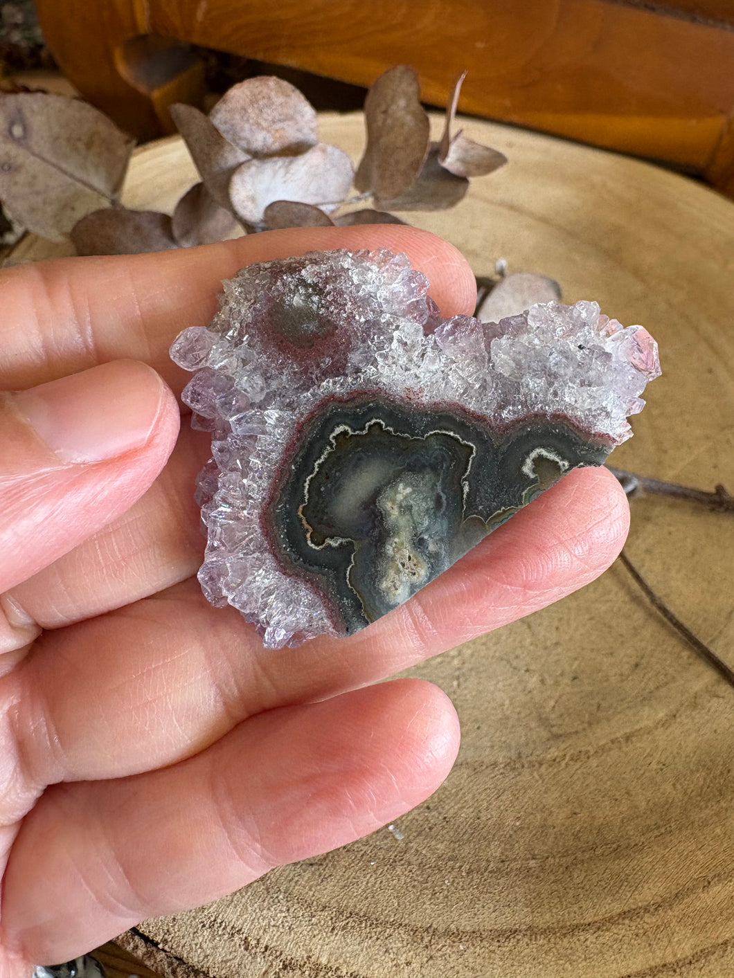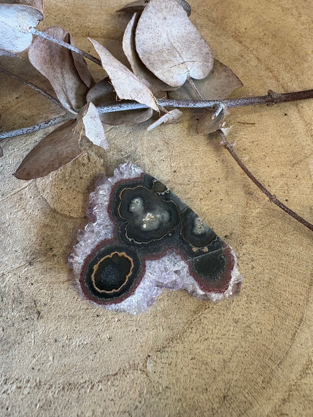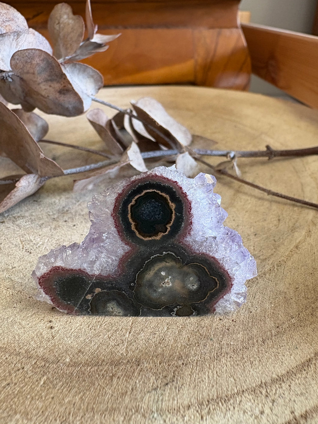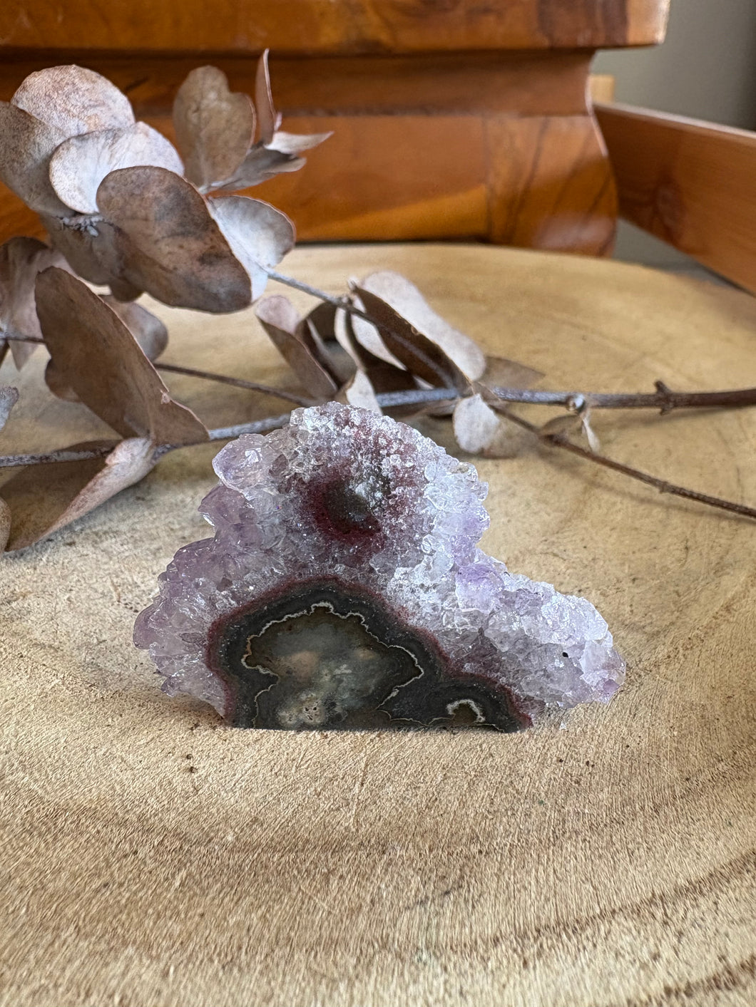 A beautiful slice of Amethyst Stalactite, delicate in its makeup and beauty.
