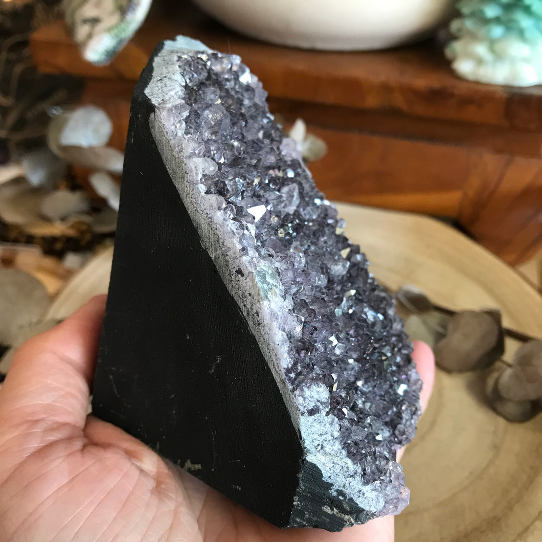 A dark purple Amethyst cluster which stands proudly with so much sparkle.