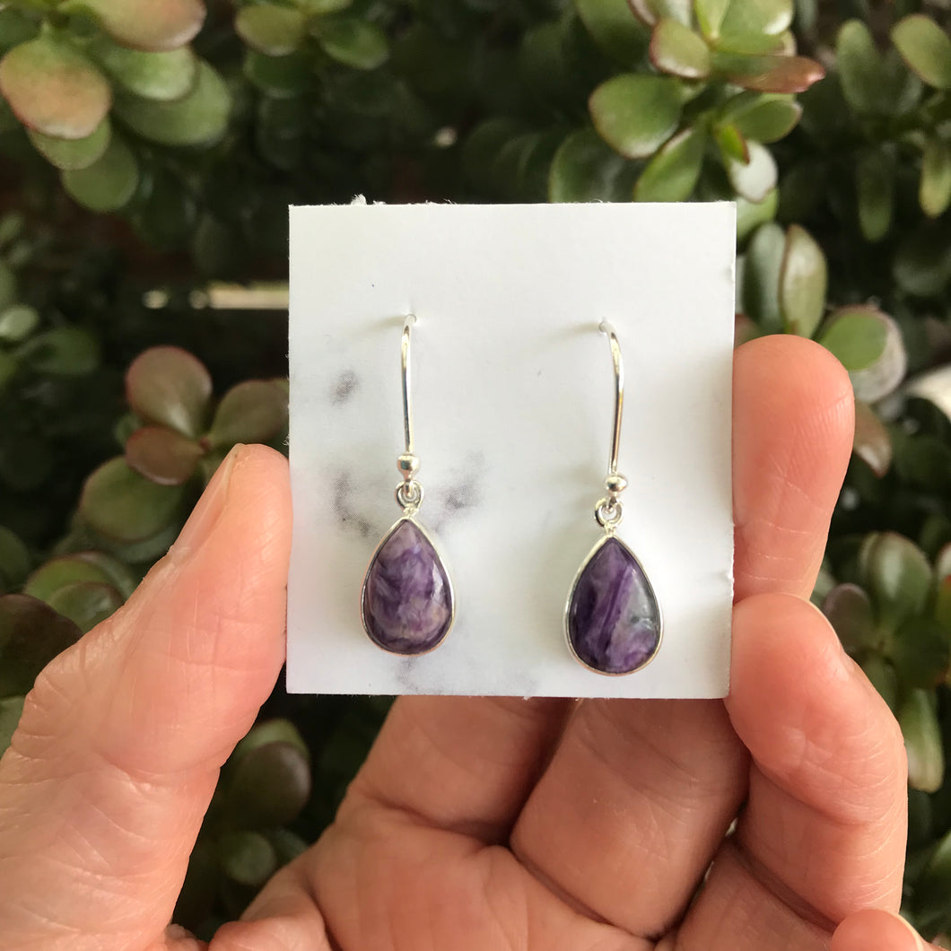 - Sterling Silver Charoite Earrings SKu 21448 -
