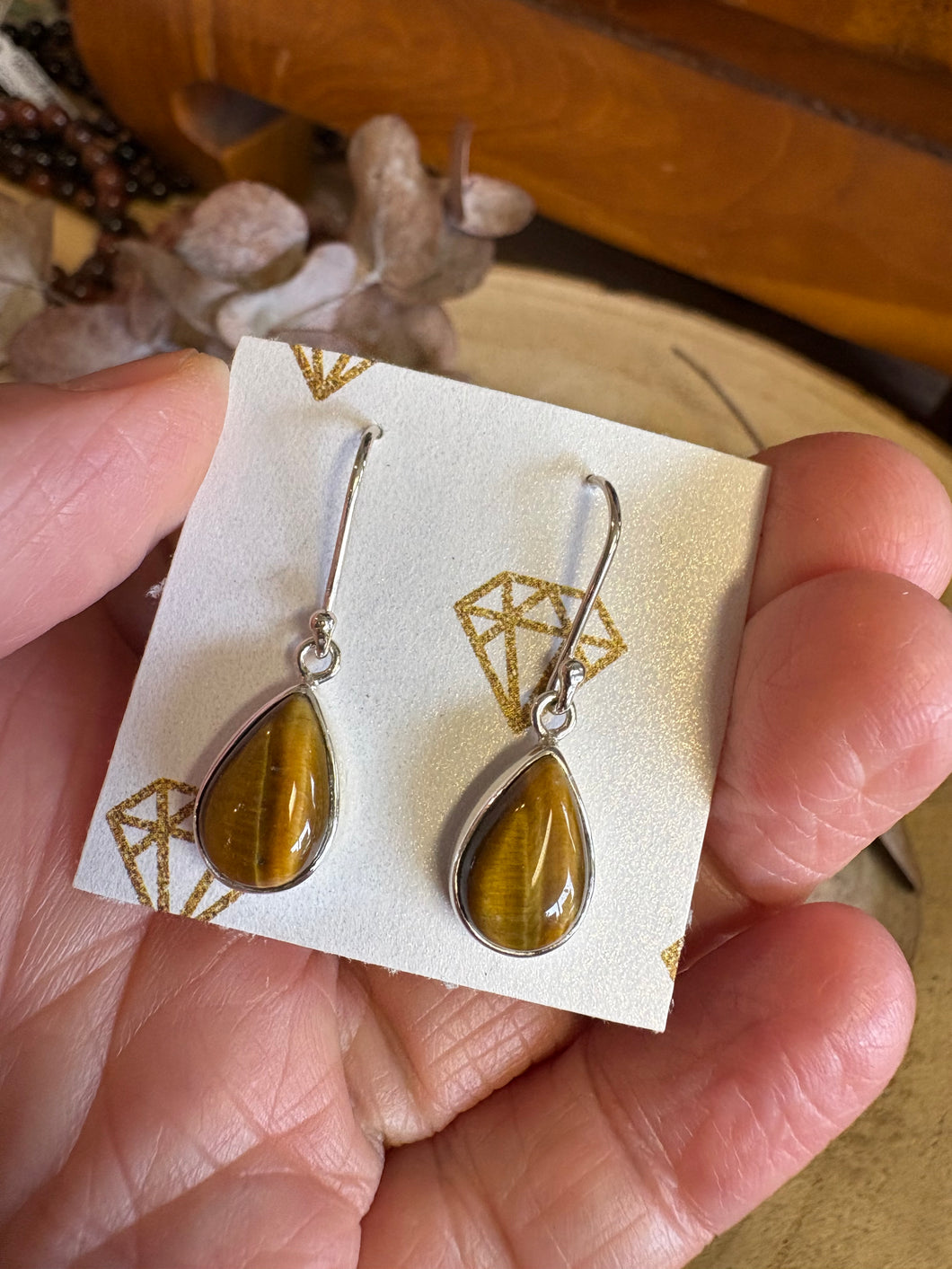 - Sterling Silver Tiger Eye Drop Earrings SKU 25347 -
