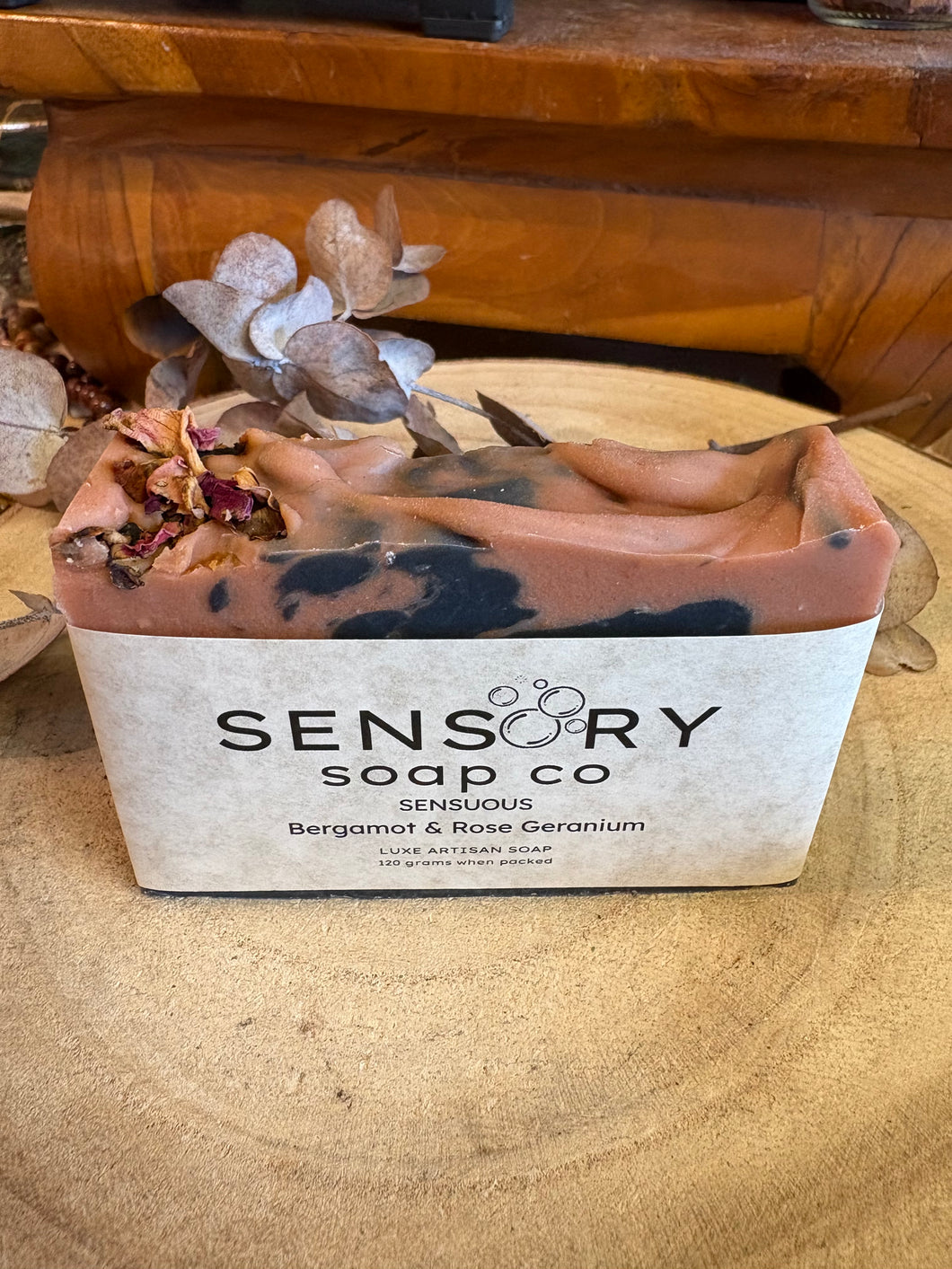 This bar is called Sensuous and features Bergamot & Rose Geranium.