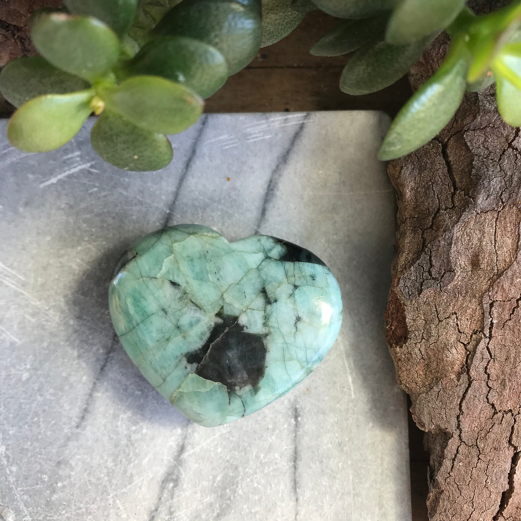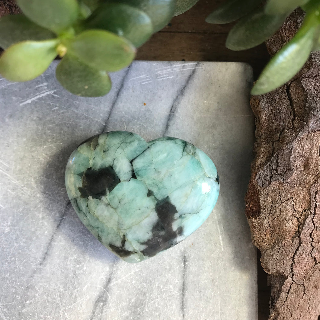 This is a real beauty of a heart, with a great saturation of Emerald.
