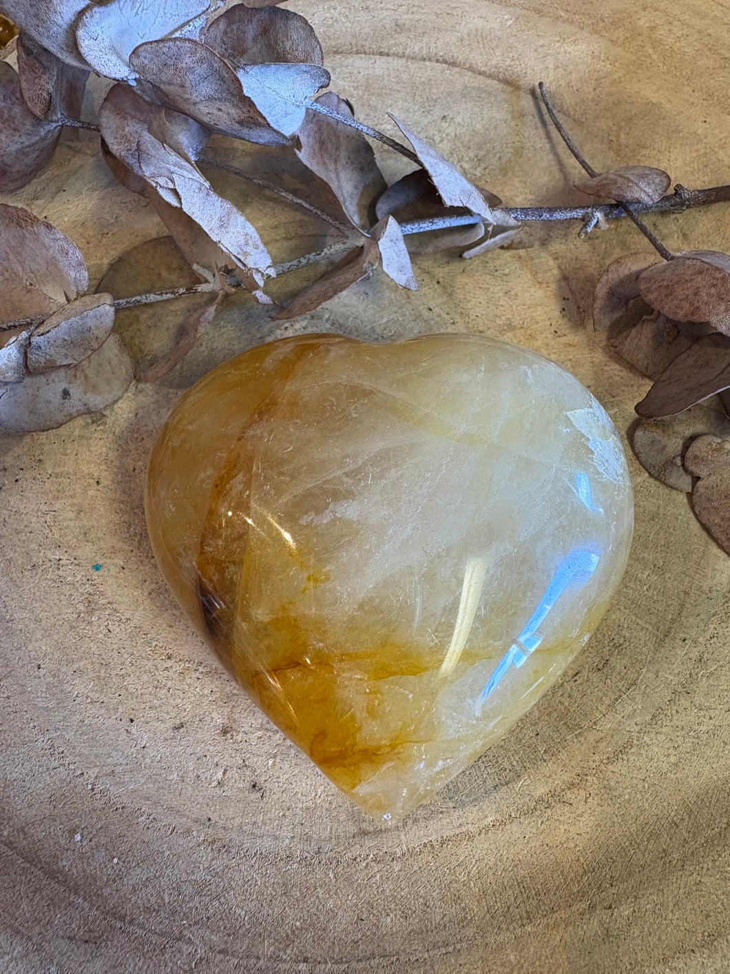 A truly golden heart of Golden Healer Quartz, and a couple of slight imperfections cannot dim its beauty.