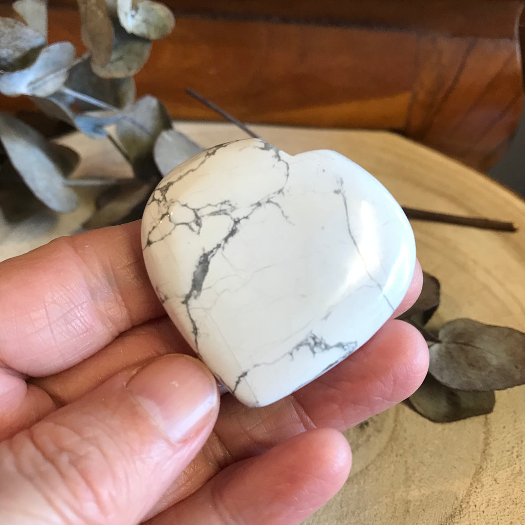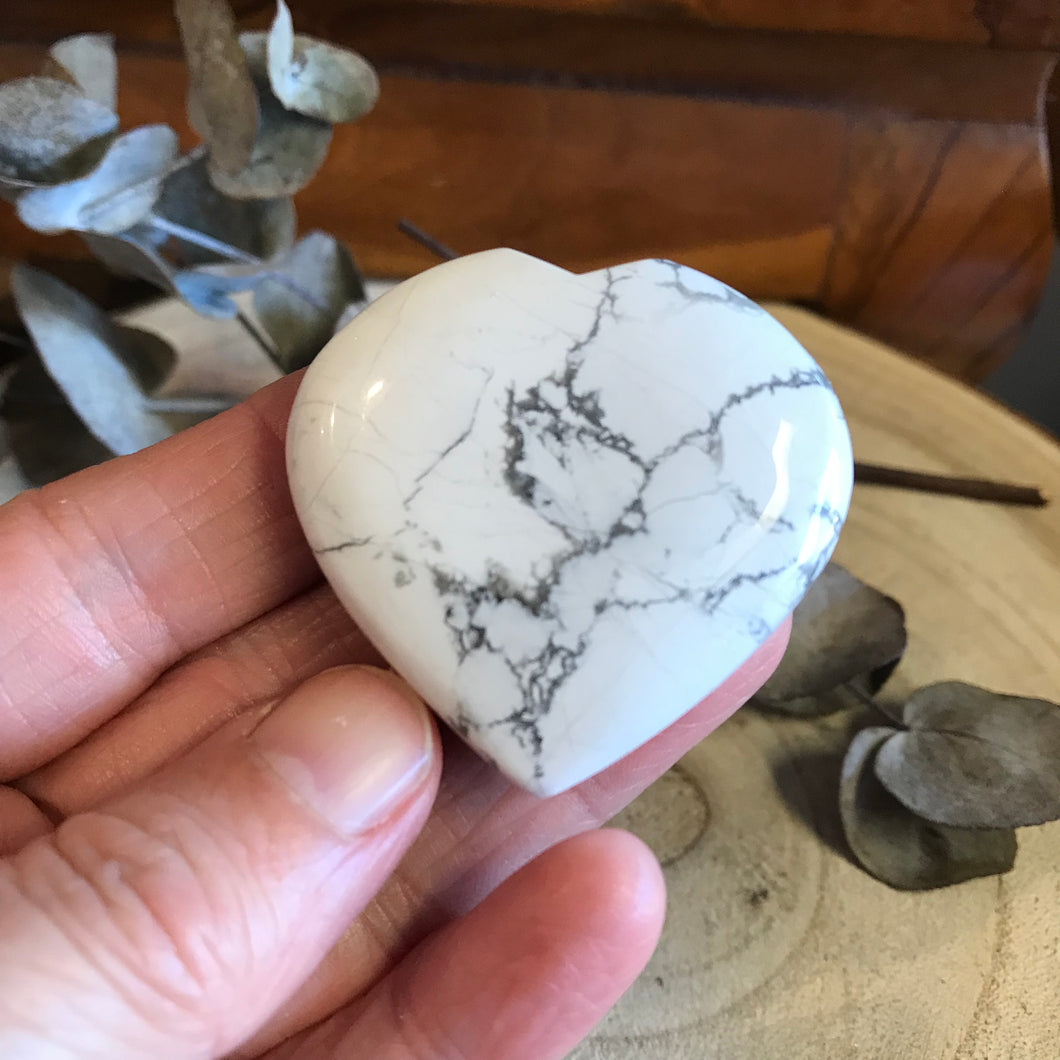 A lovely heart of visually striking Howlite, which is also known as the Reiki stone.