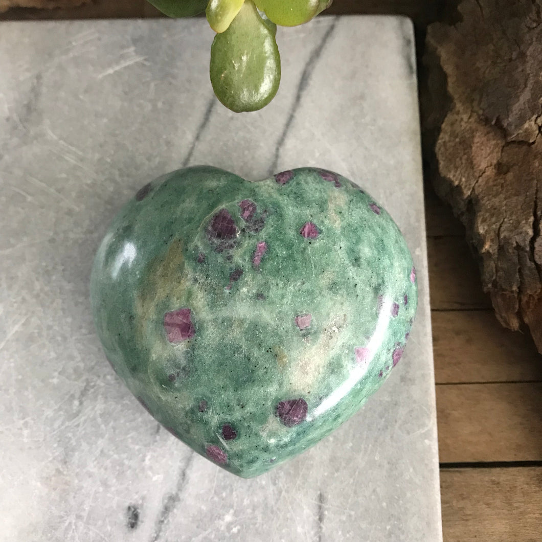 This is the third and final Ruby Fuchsite heart from my most recent delivery, and it’s a bit of a beauty.