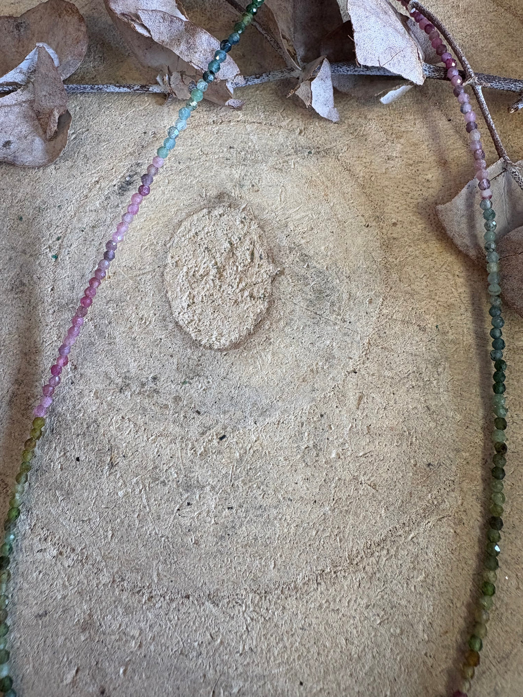 A lovely variation of colour can be seen in this facet cut beaded necklace of bi colour Tourmaline.