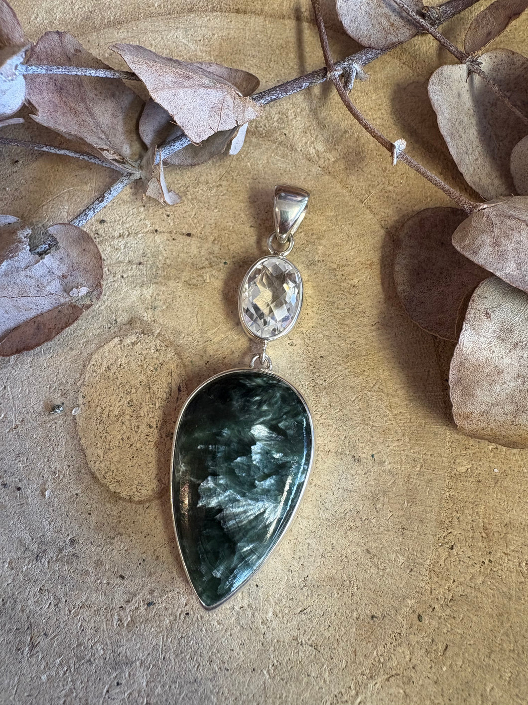 Sterling Silver Seraphinite & Clear Quartz Pendant SKU 25348