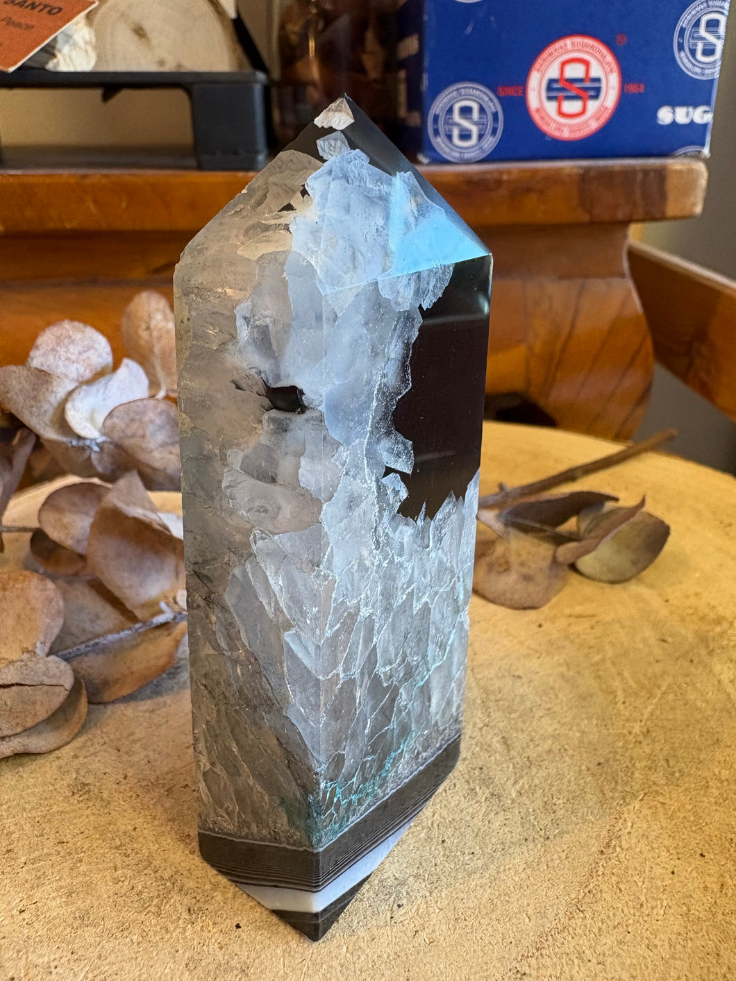 Black Banded Agate & Quartz Obelisk SKU 25070
