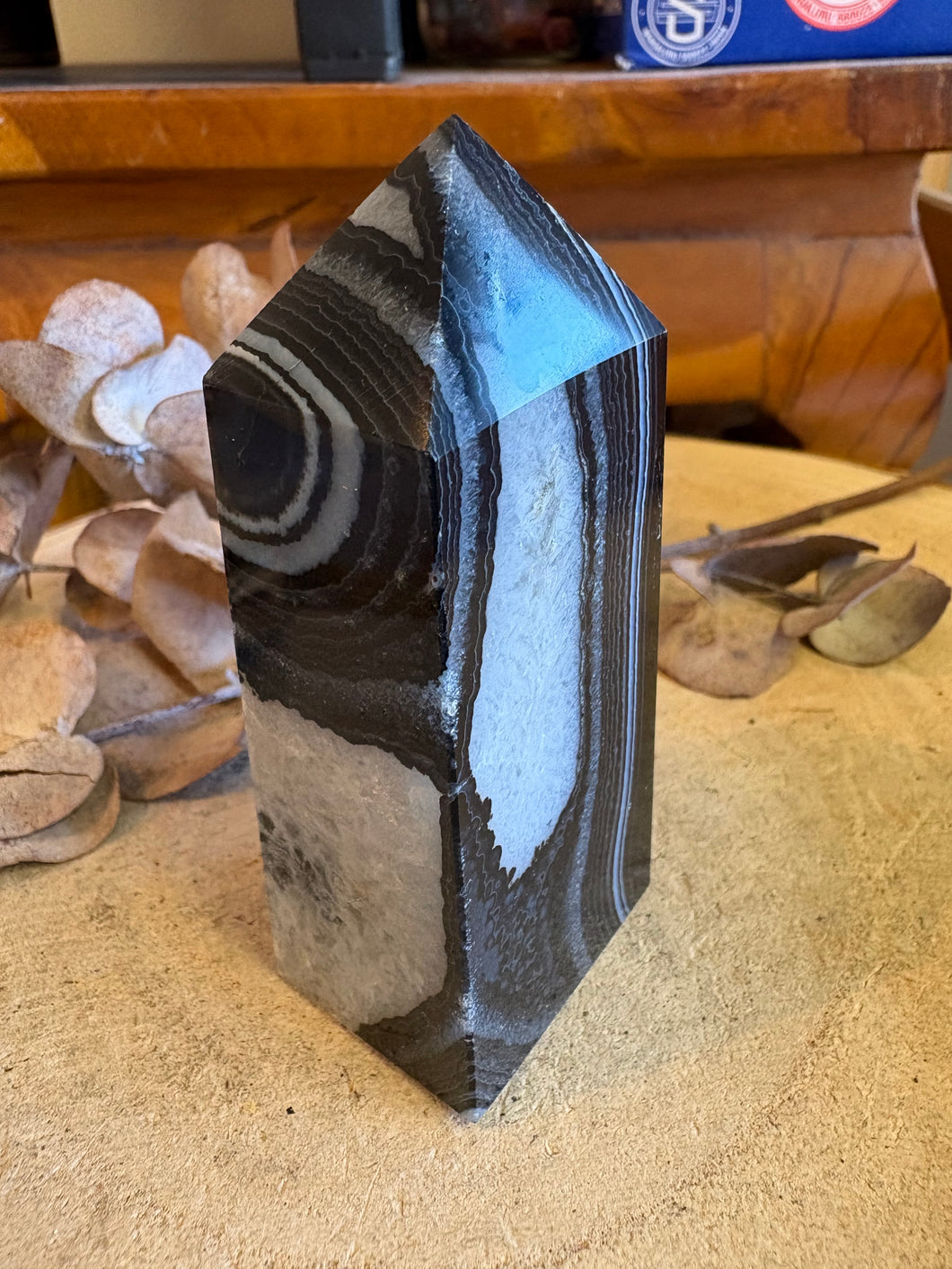 Black Banded Agate & Quartz Obelisk SKU 25071