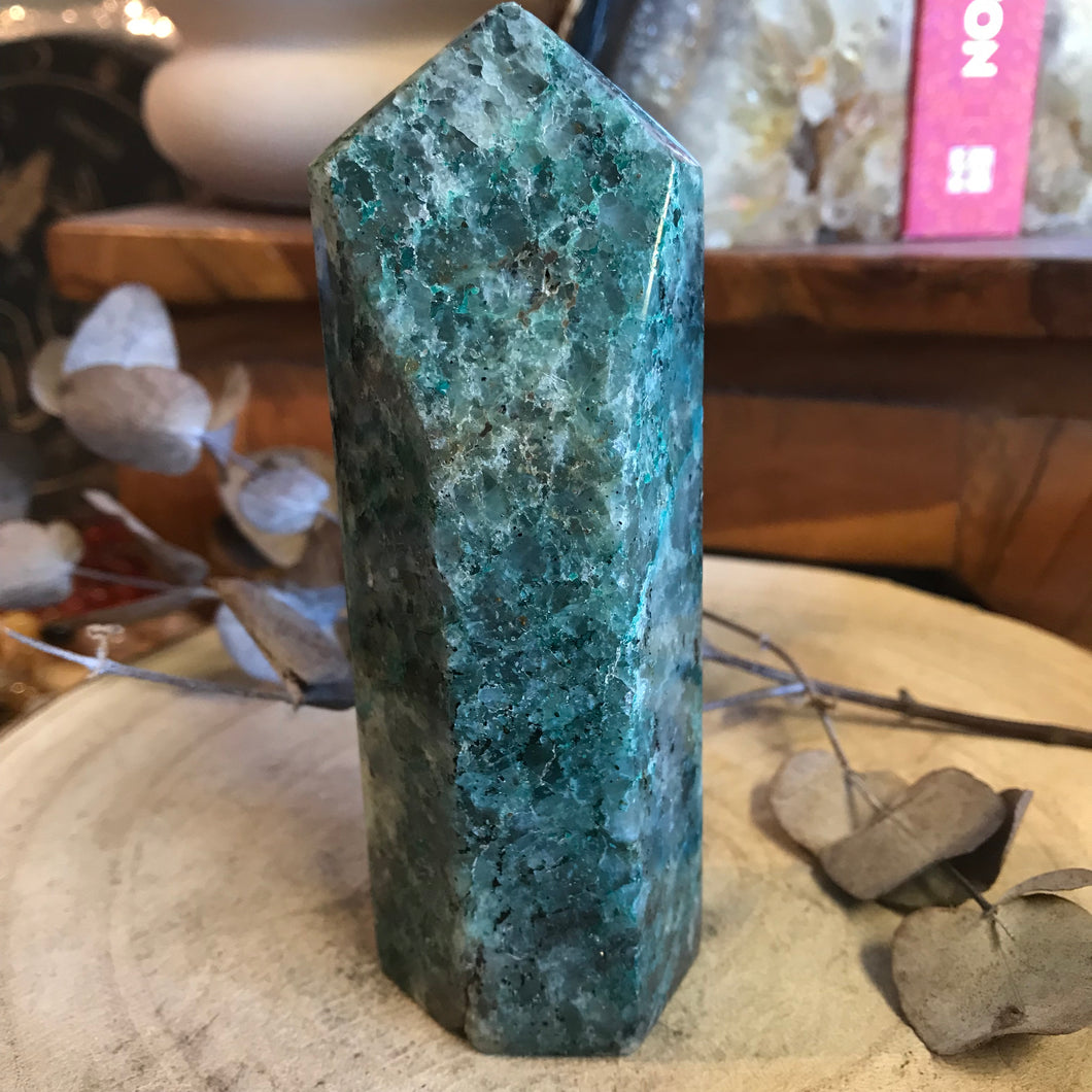 This piece of Chrysocolla from Madagascar has a beautiful face and commanding presence.