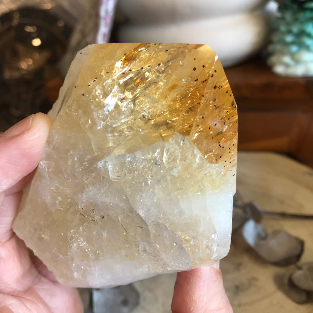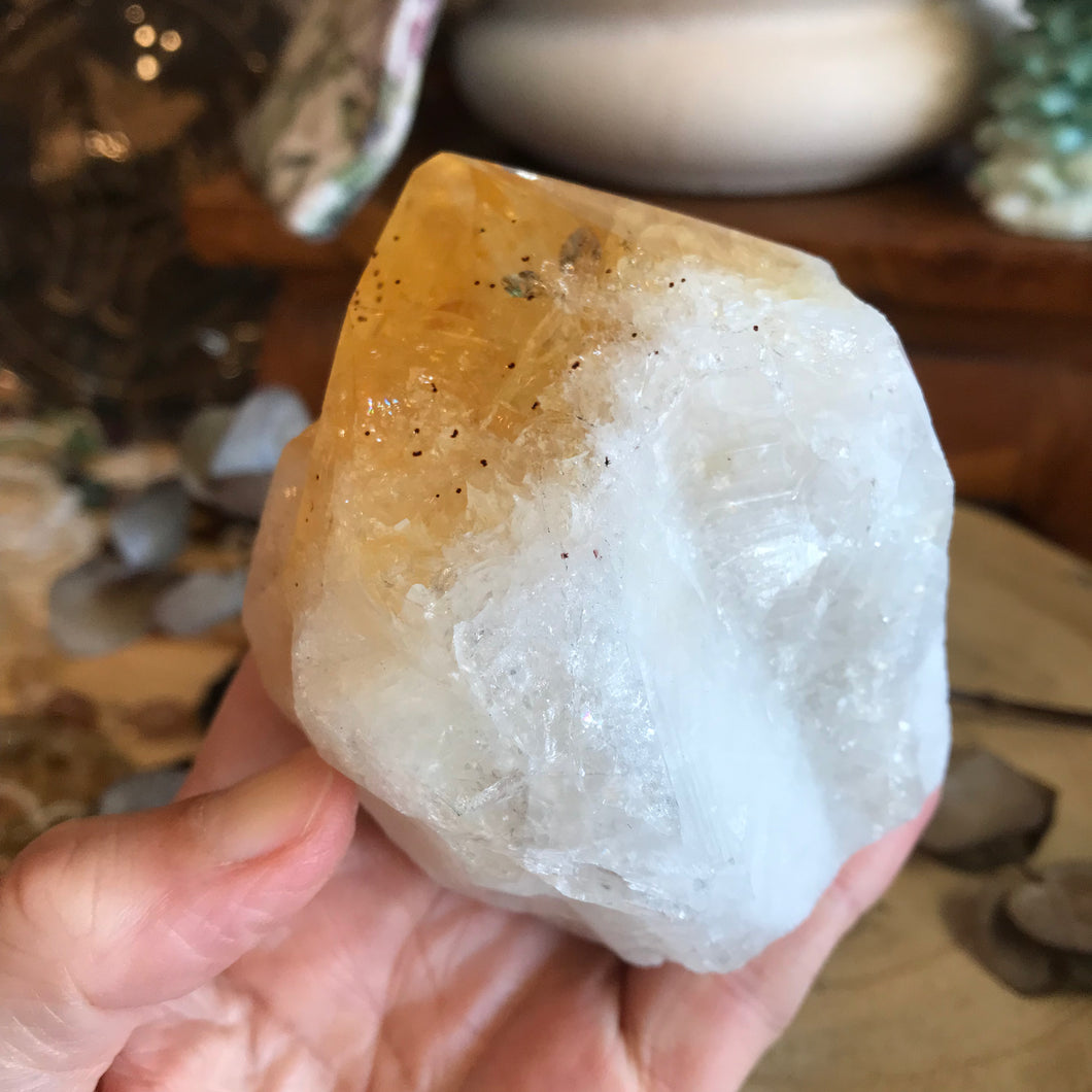 This citrine is of the heat treated Amethyst variety; but don’t let that put you off as it can sometimes be more vibrant in energy than that of its natural counterpart.