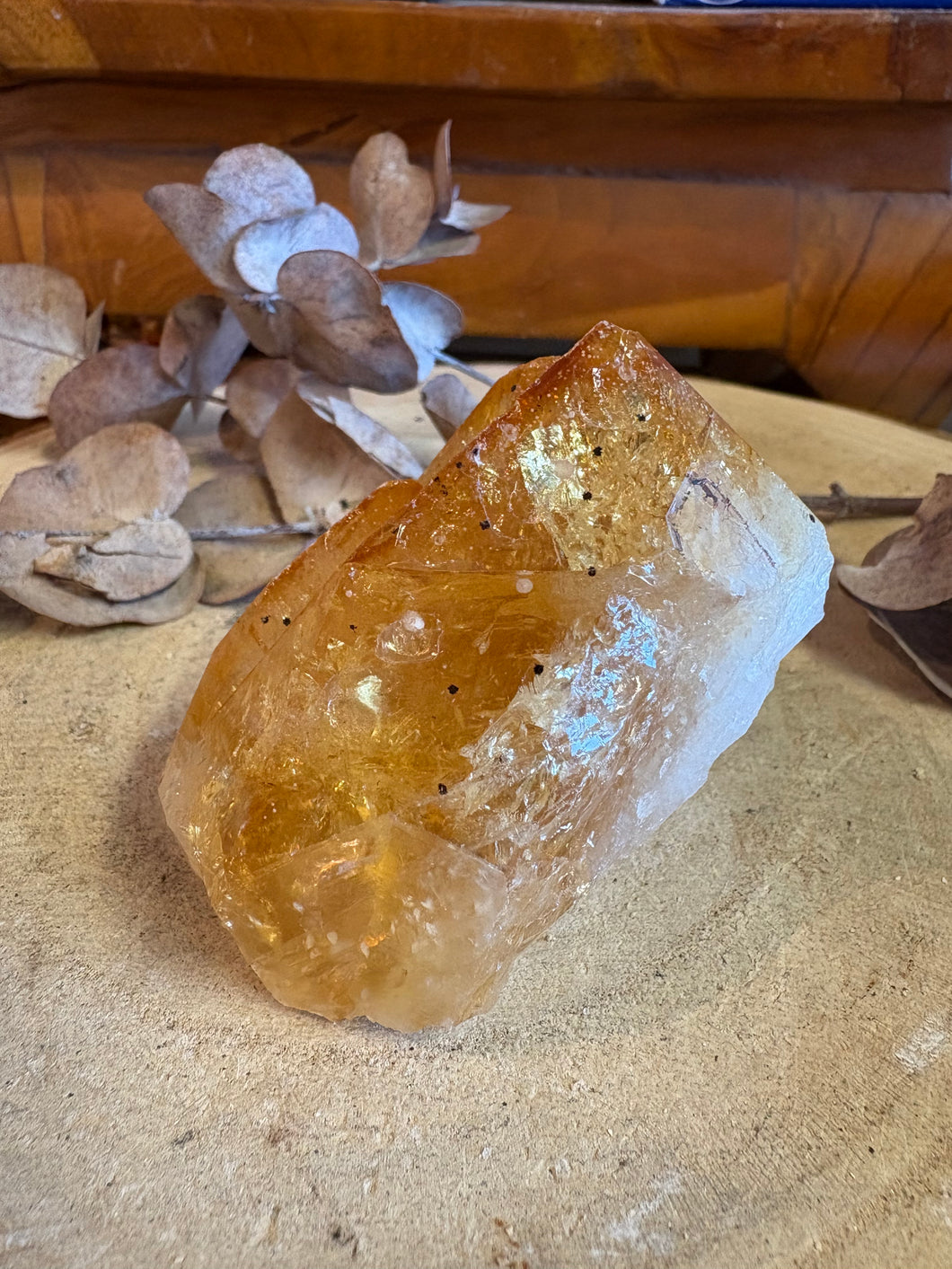 A richly coloured Citrine base cut point (of the heat treated Amethyst variety), with a wonderful shape and a rainbow or two.