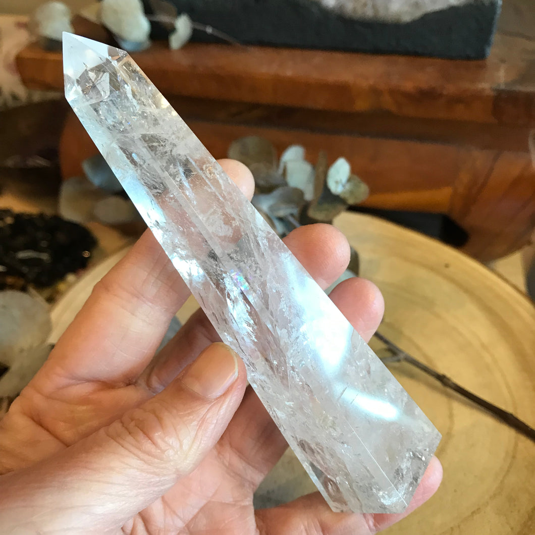 Such a stunning piece of Clear Quartz; bright energy, light filled, and plenty of rainbows too.