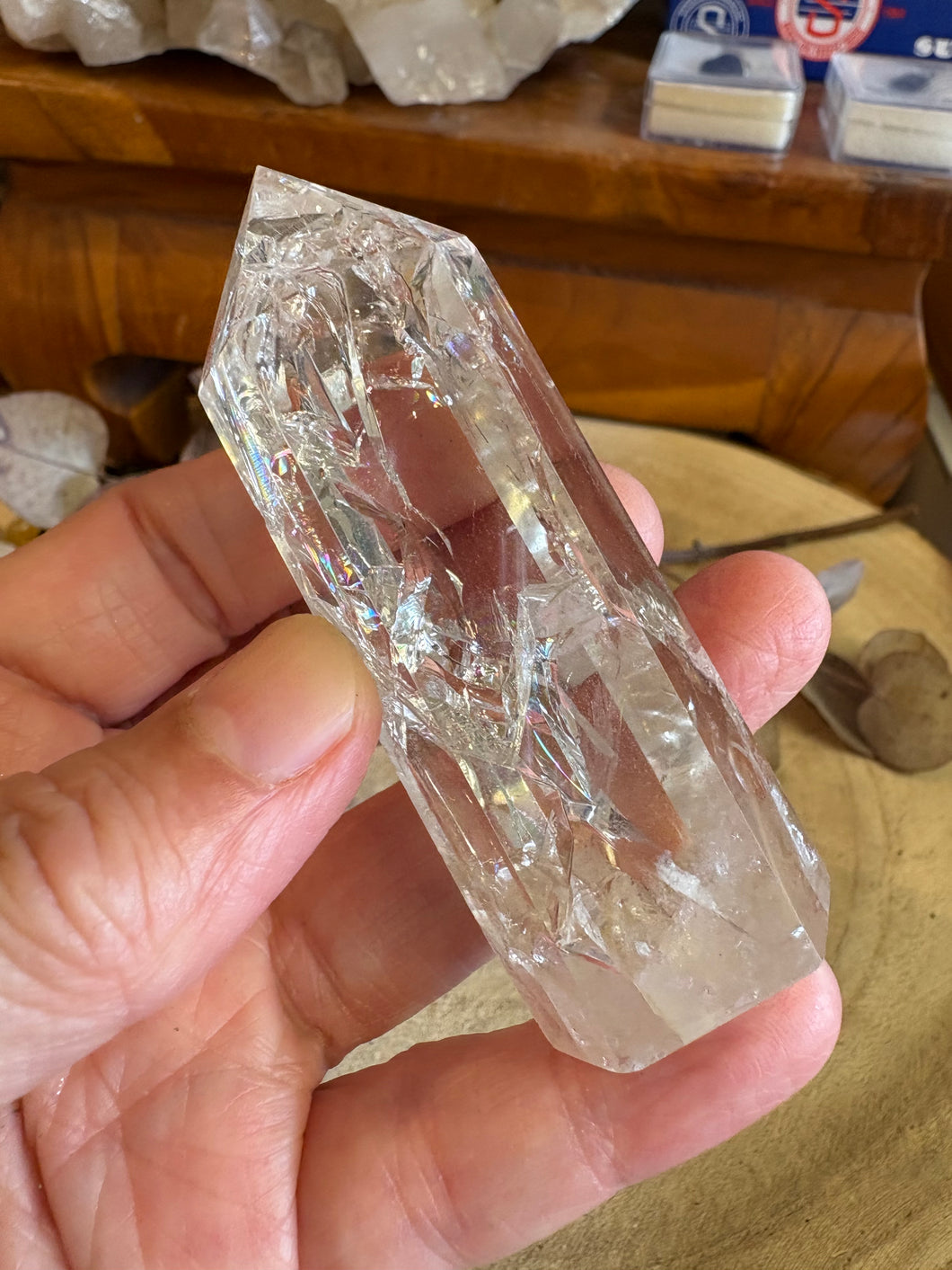 A characterful point of sparkling Fire & Ice Quartz, and all its rainbows.