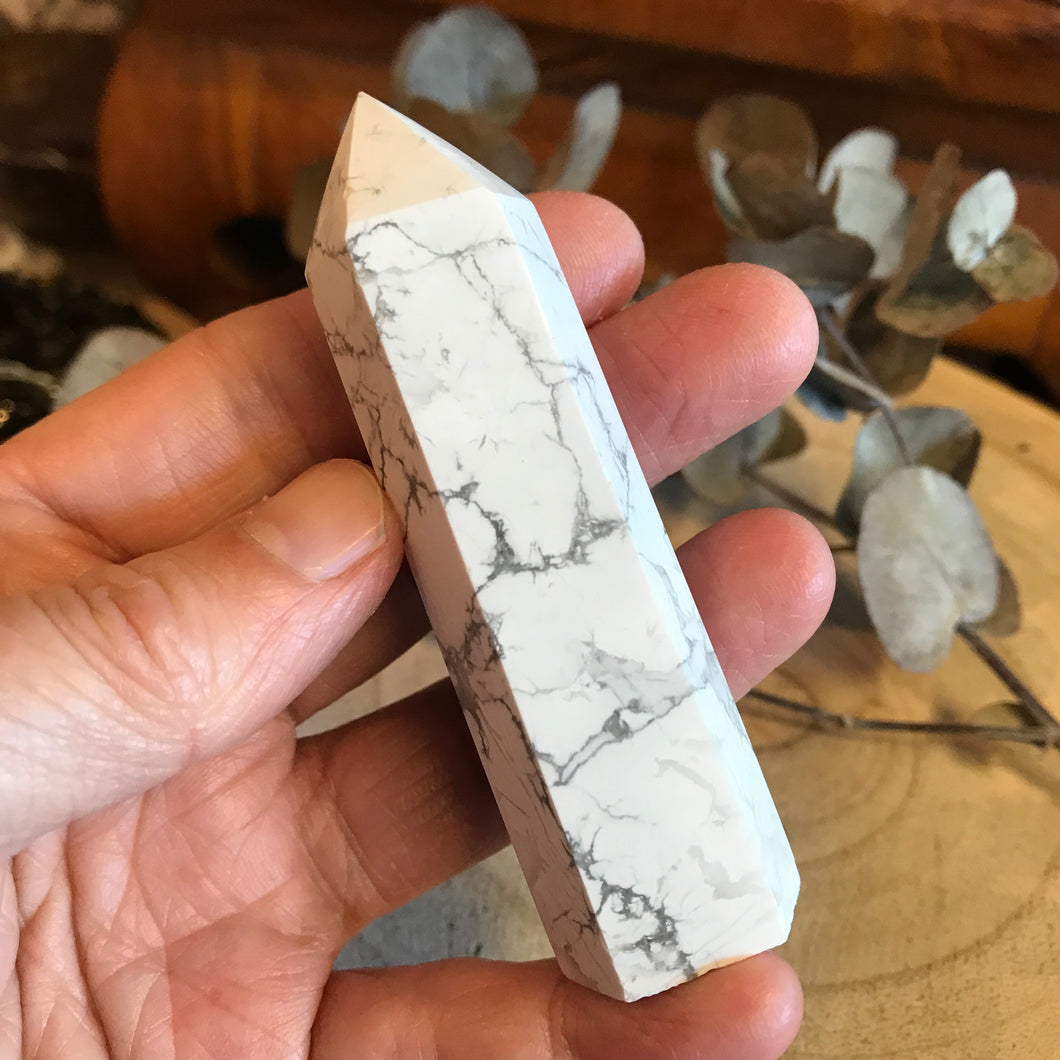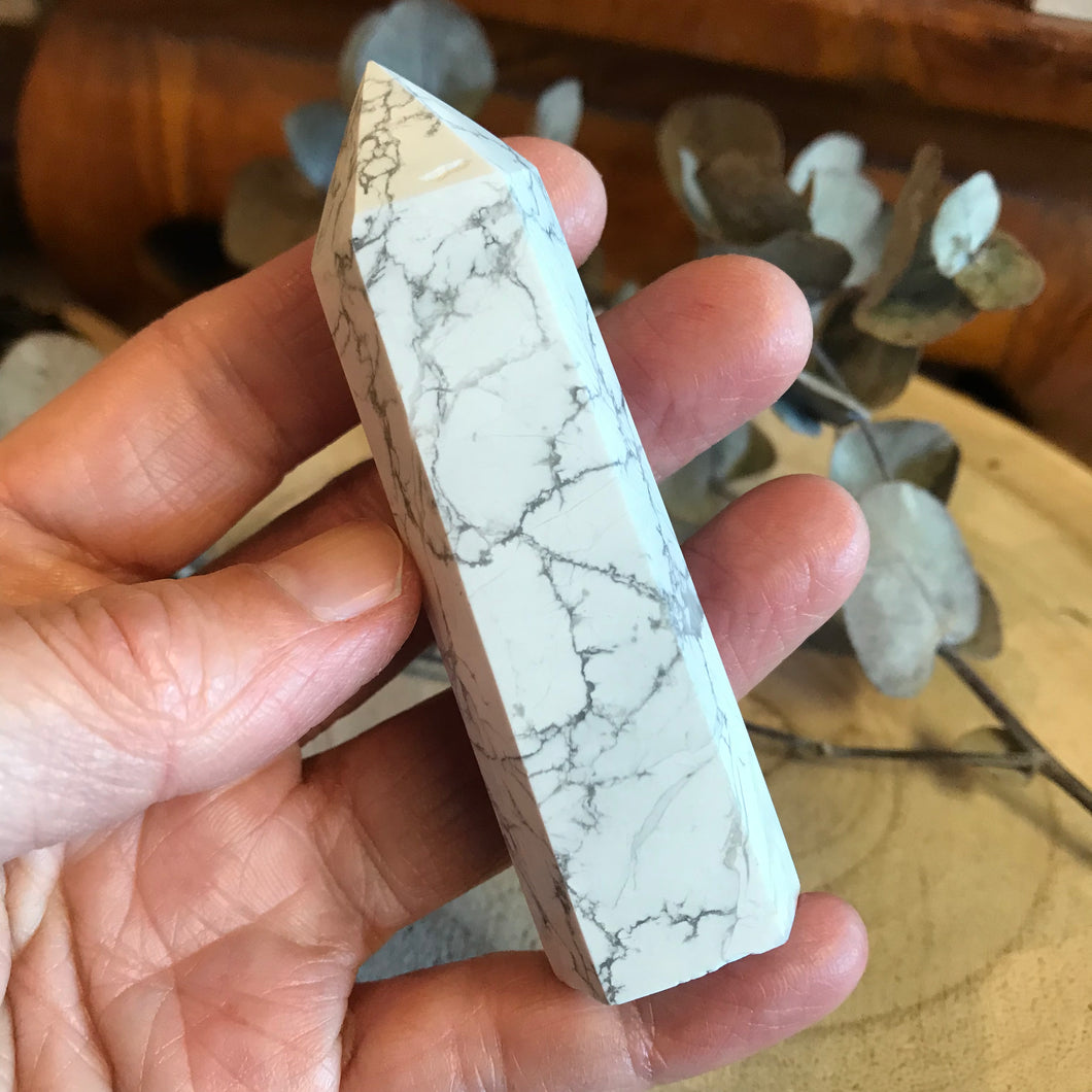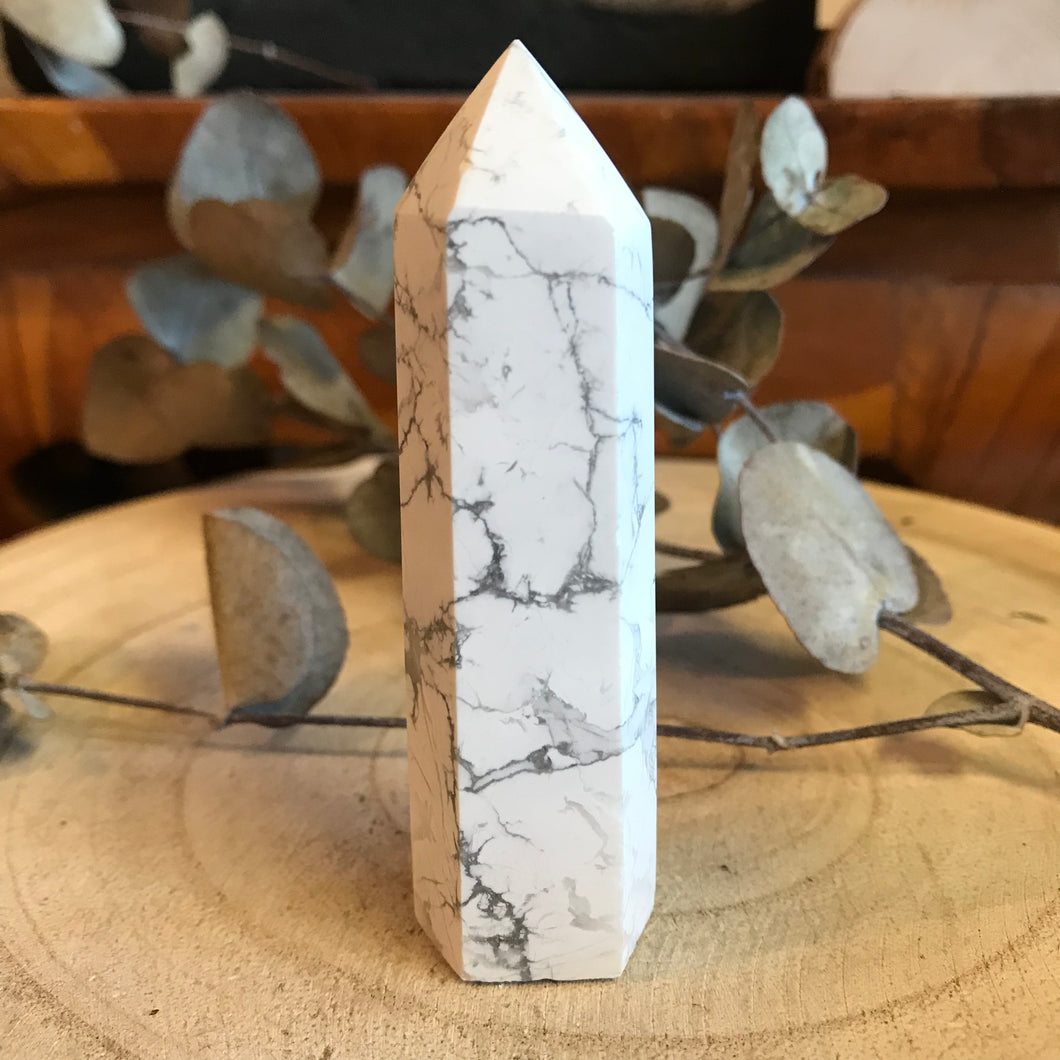 A lovely point of the soothing energetic Reiki stone that is Howlite.