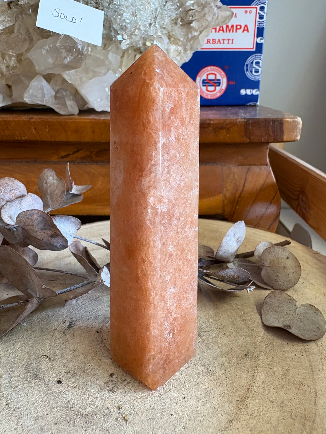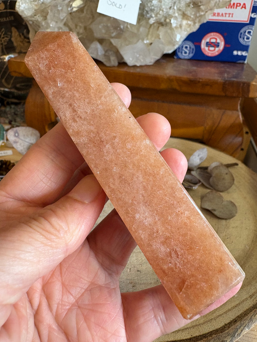 The first of a trio of lovely obelisks of Peach Aventurine.