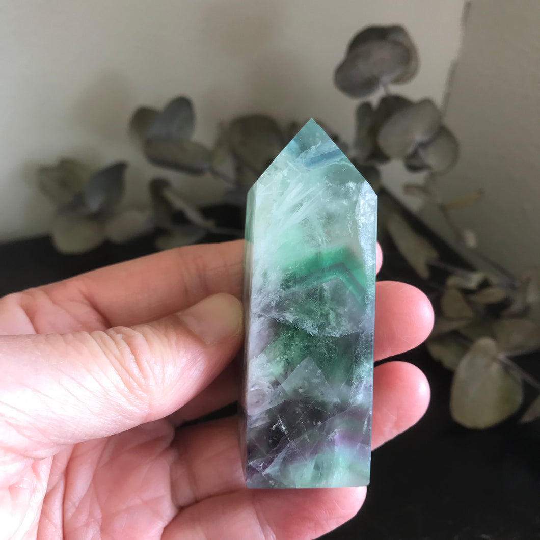 The lucky last point of this beautifully ethereal Rainbow Fluorite variety.