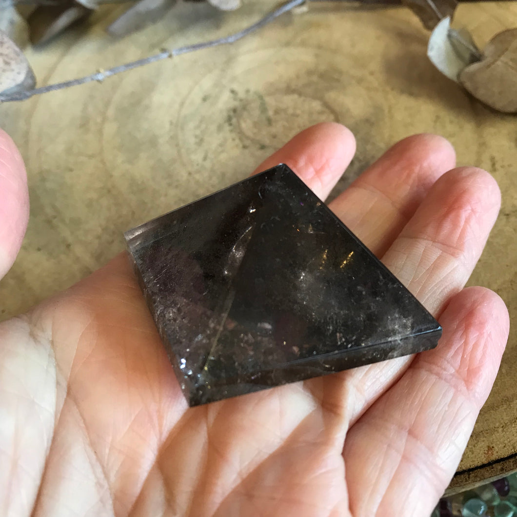 A darker coloured Smoky pyramid with lots of character, and some lovely sparkling action in its centre.