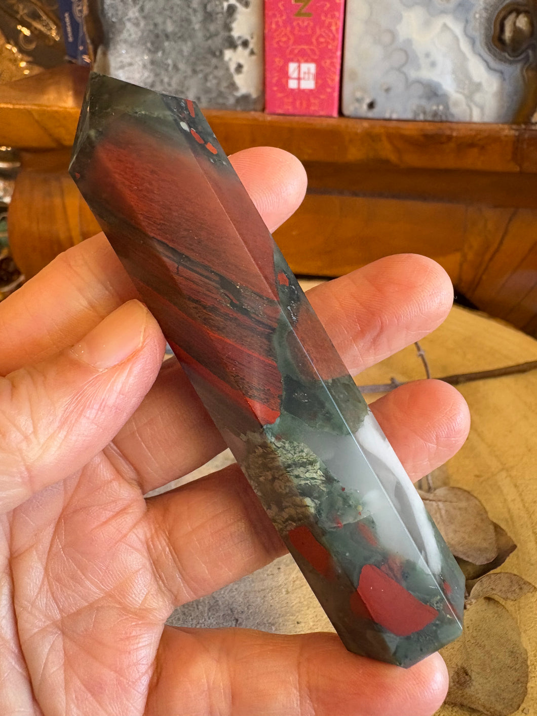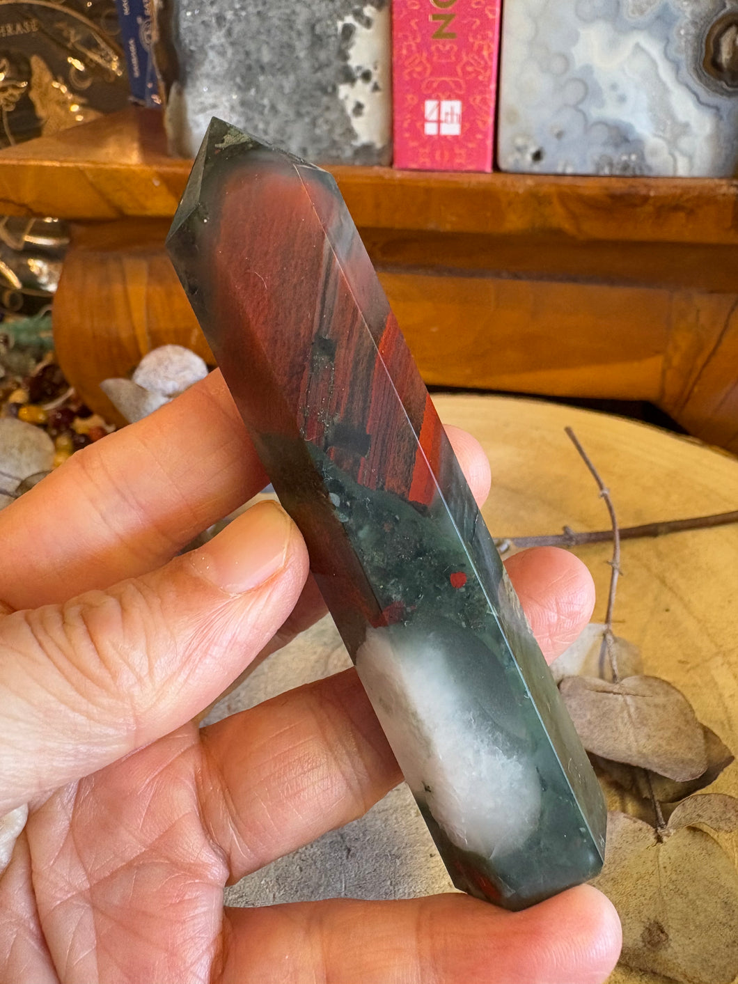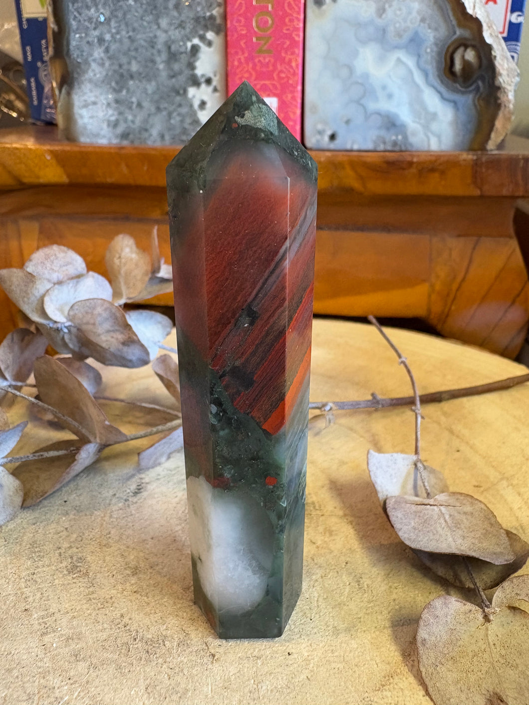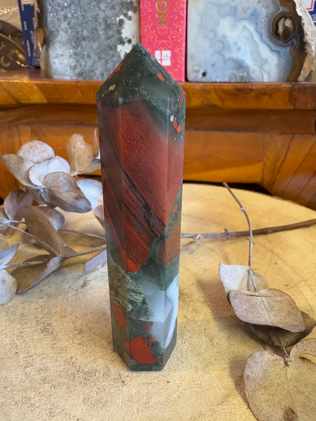 A colourful point of South African Bloodstone.