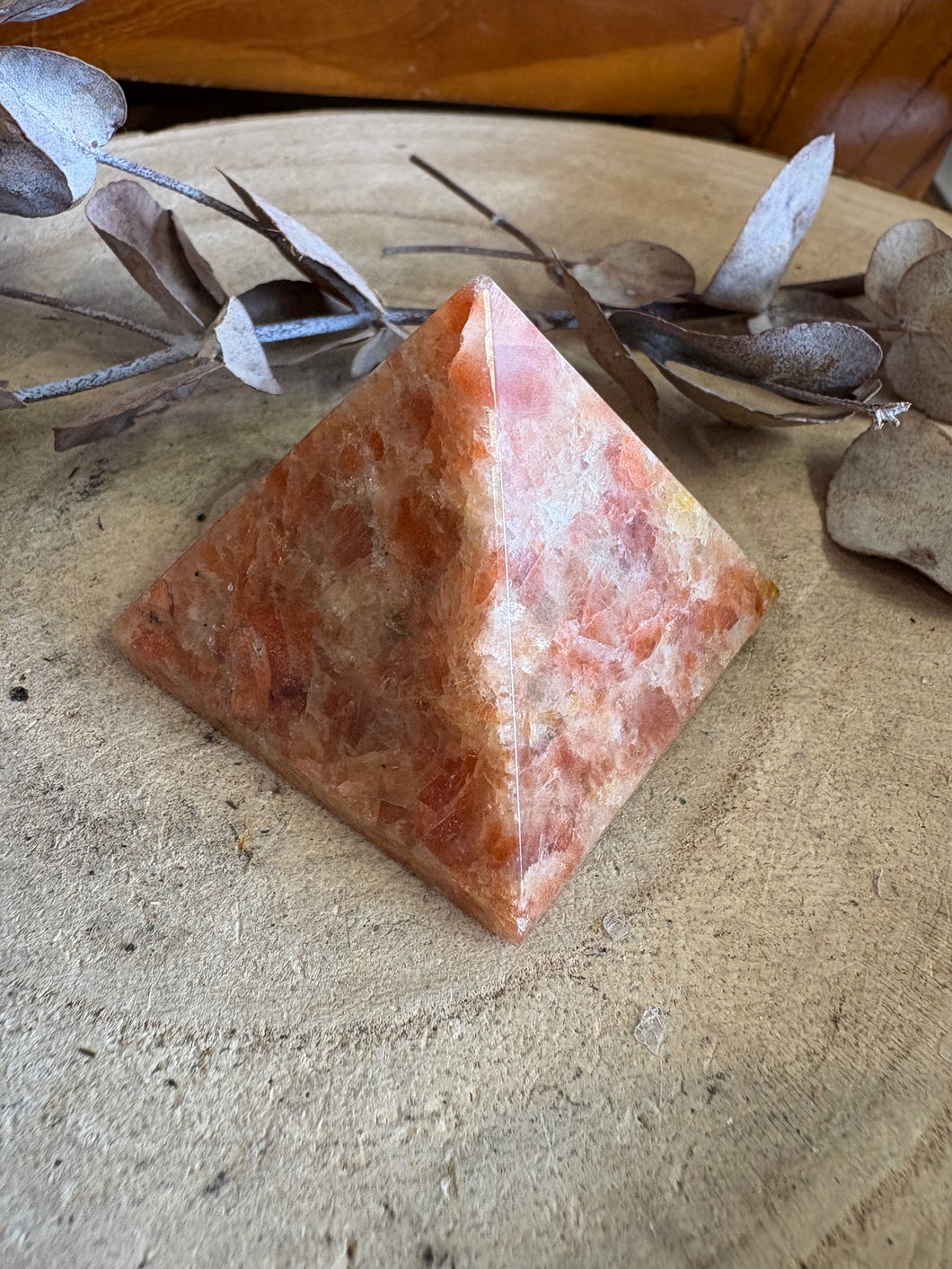 A super colourful and sparkly Sunstone pyramid with lots of character and charm.