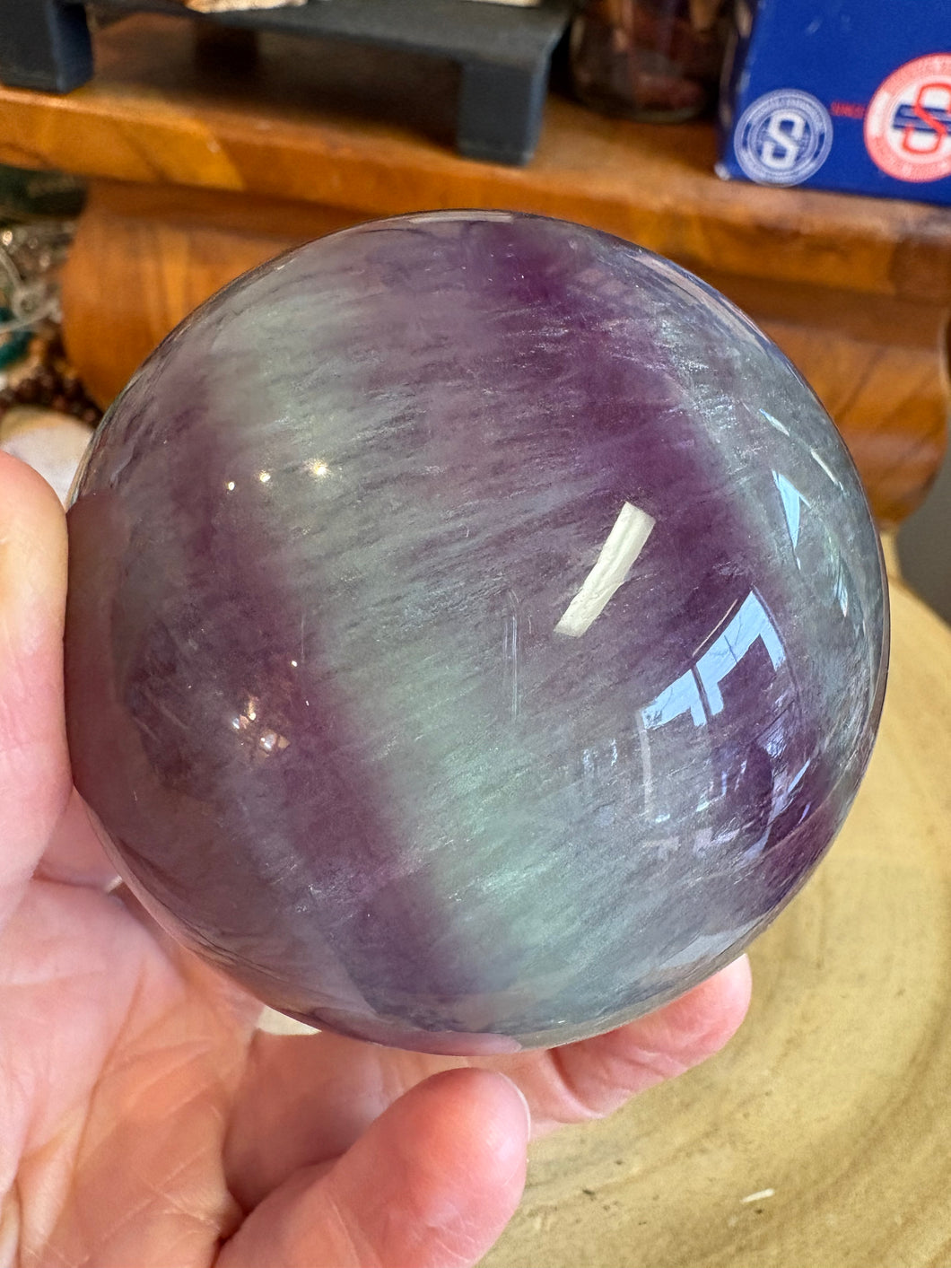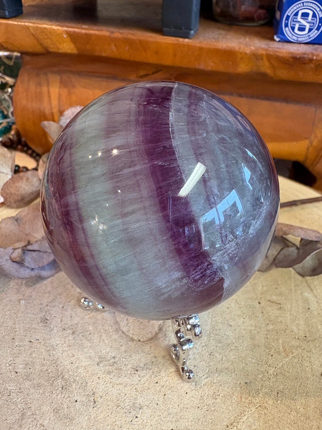 I was lucky enough to secure some amazing Rainbow Fluorite spheres with gorgeous lines and mix of colour; this is the largest of them.