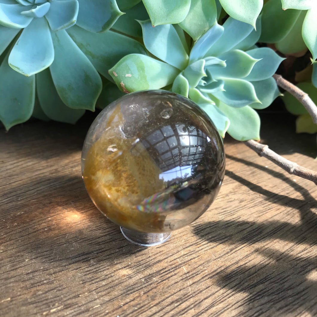 This little treasure is a lovely example of Smoky Quartz, with a colourful inclusion, and a fabulous rainbow. Quite possibly a Smoky Golden Healer, judging by the inclusion.