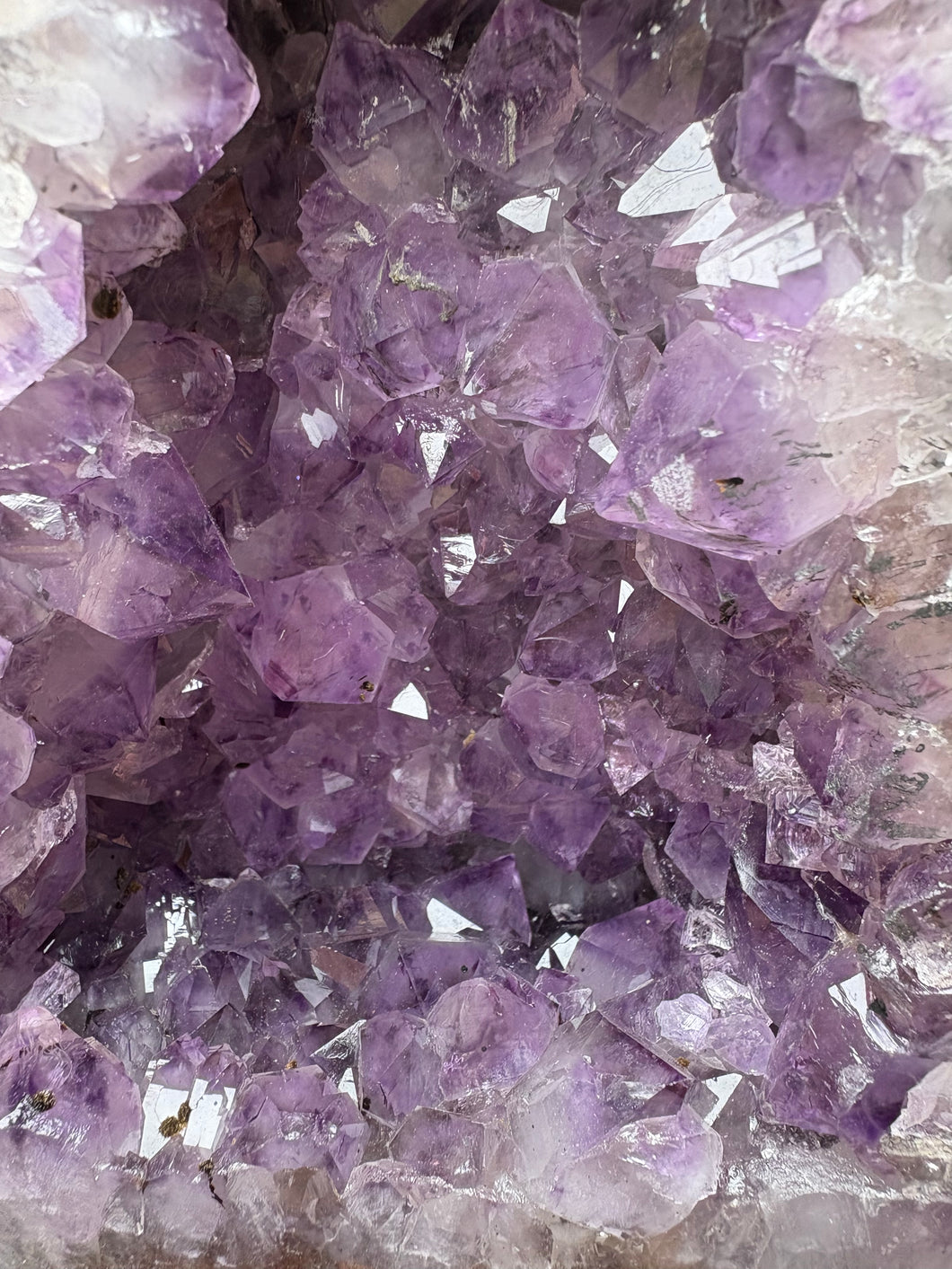 A sweet little Amethyst cave with plenty of character and clear Agate landscape at the base.