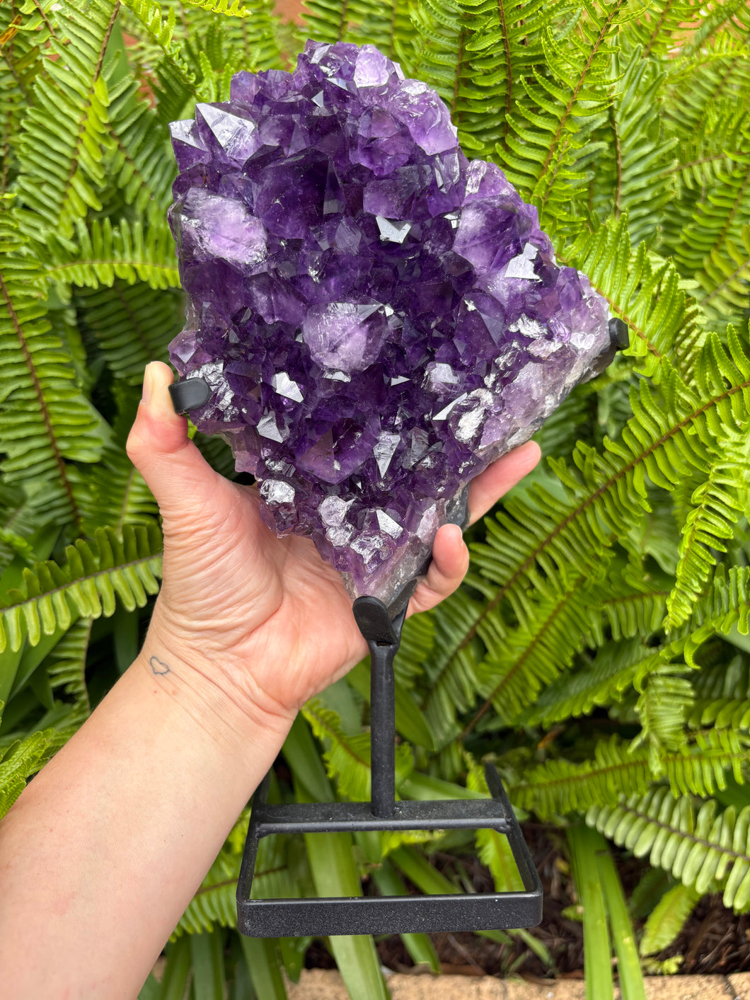 - Amethyst Cluster in Metal Stand SKU 25375 -
