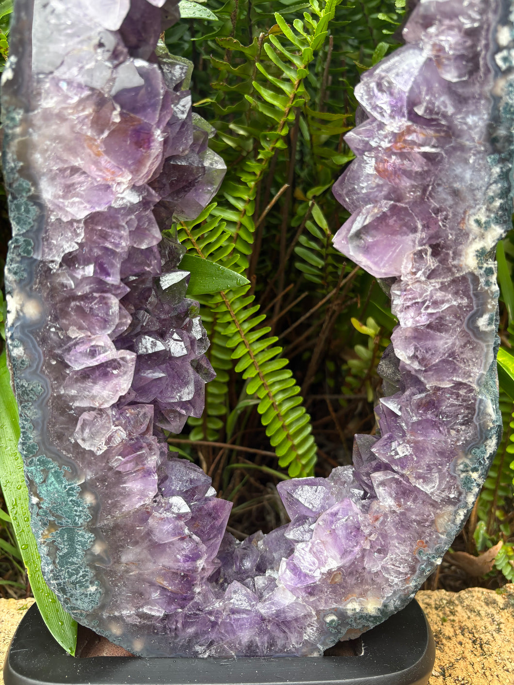 - Amethyst Geode Slice in Wooden Stand SKU 25395 -