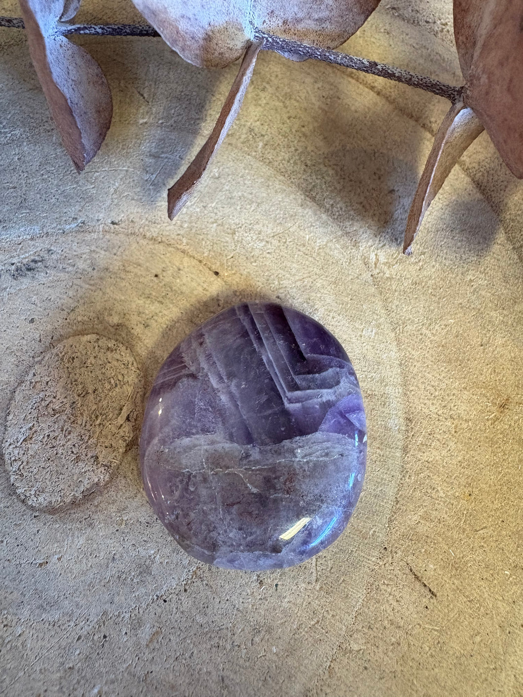 A sweet little smooth stone of spiritual Amethyst, perfect for pockets, pillowcases or handbags.