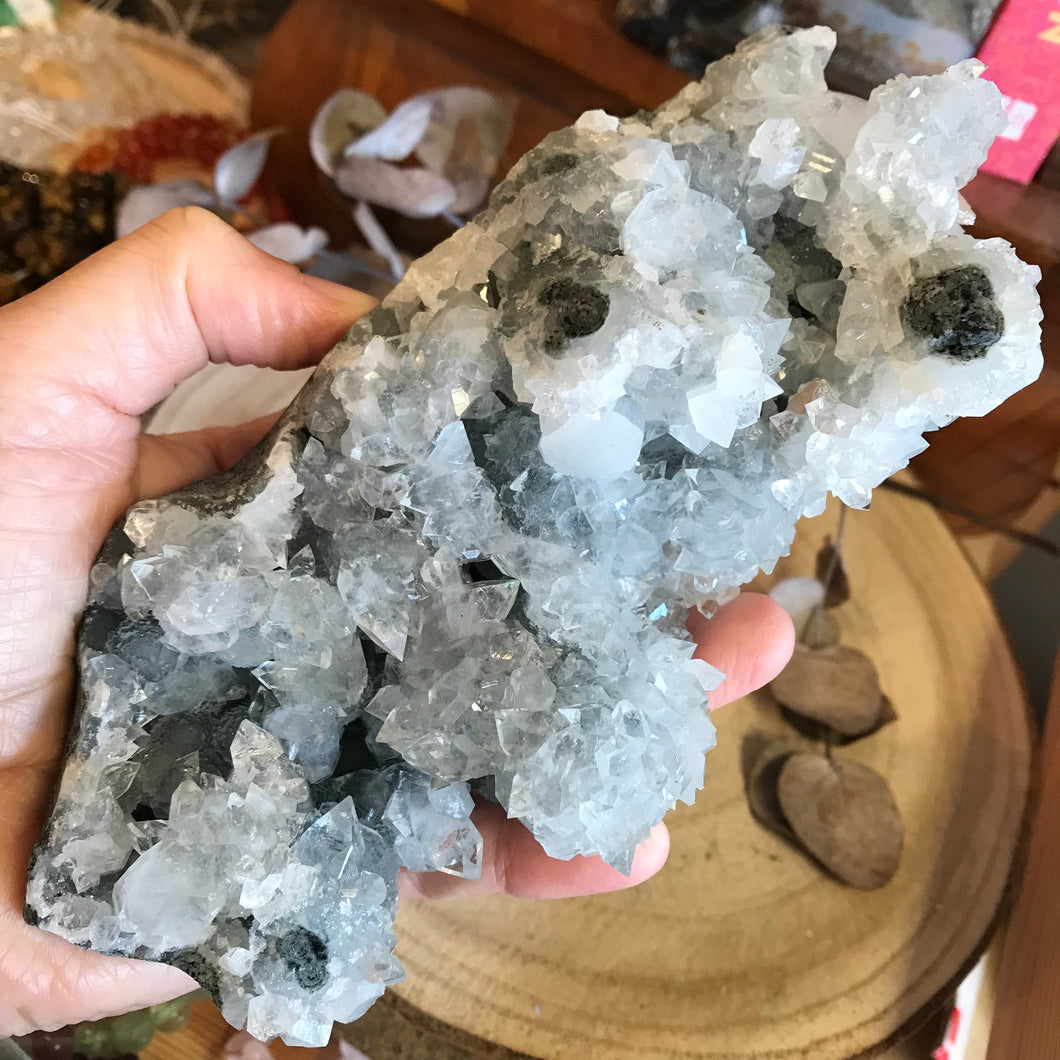 This piece of Apophyllite has such sparkle, with very pointy points.