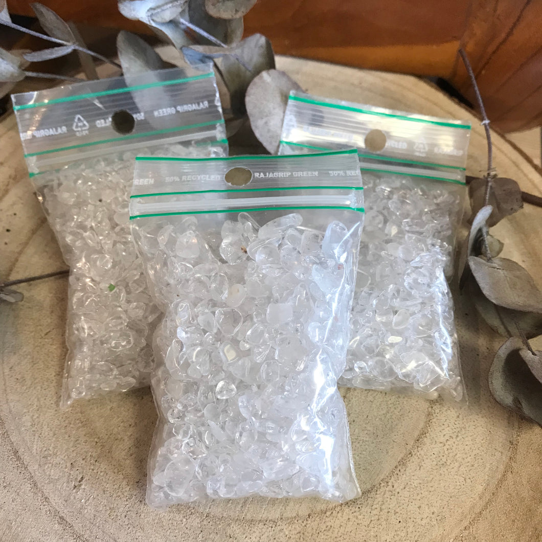Great for display, crystal grids, crystal craft, and for fairy bottles, these bagged crystal chips are very popular.