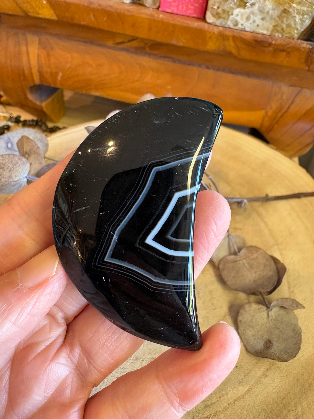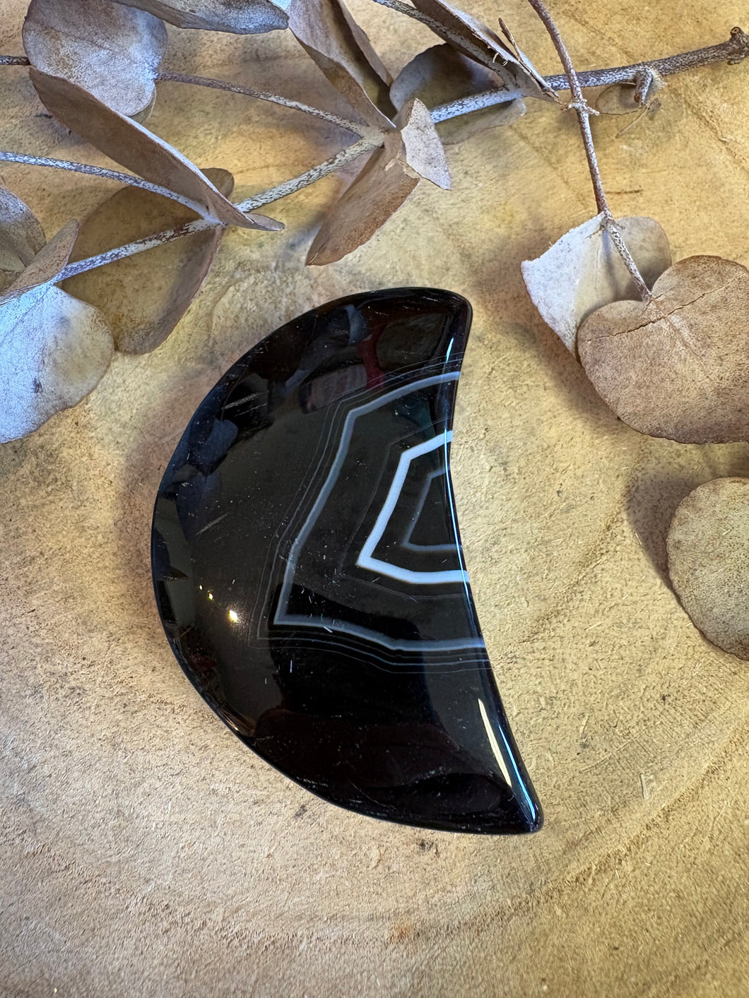 - Black Banded Agate Crescent Moon SKU 23917 -