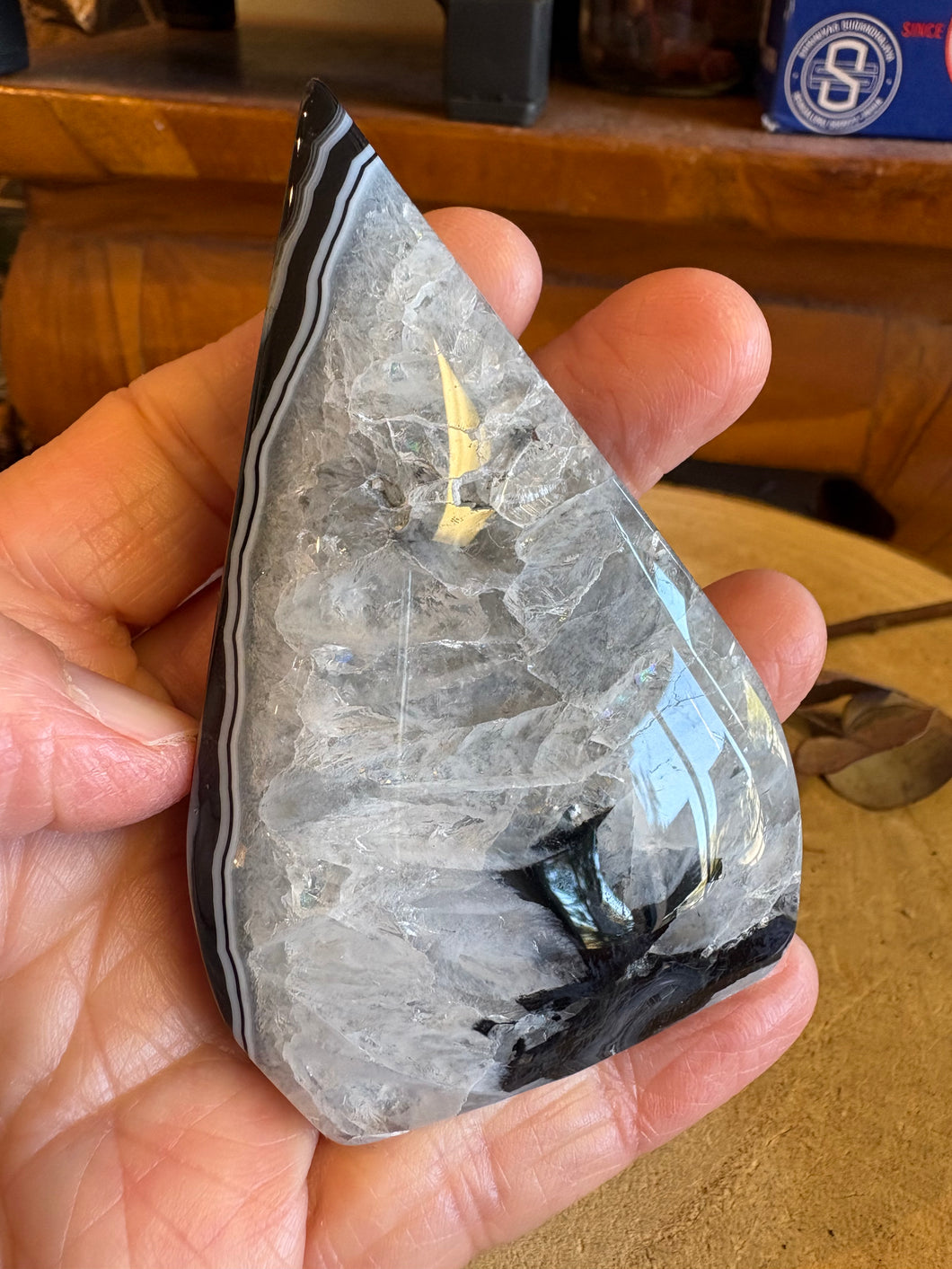 An attractive and eye catching Freeform of Black Banded Agate with a large Quartz surface area.