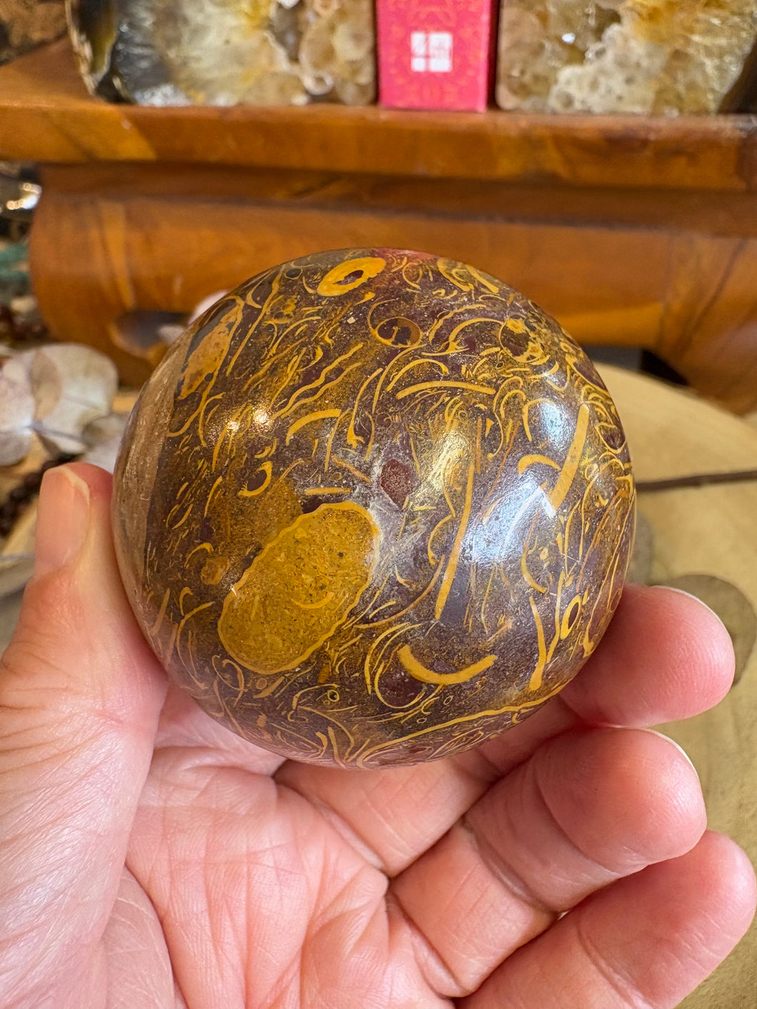 New w this stone goes by a few names; Elephant Skin Jasper, Mariam Jasper and Calligraphy Jasper.
