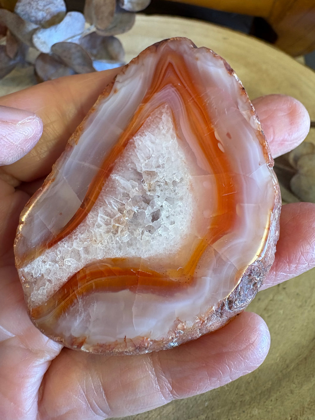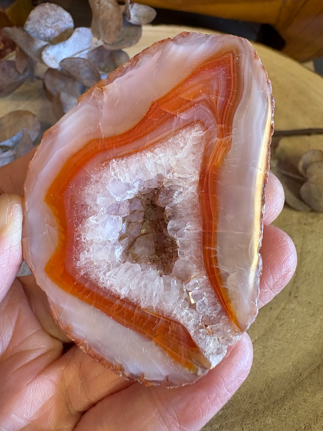 This beauty is the final and grandest of these Carnelian slabs, with a yummy geode centre.