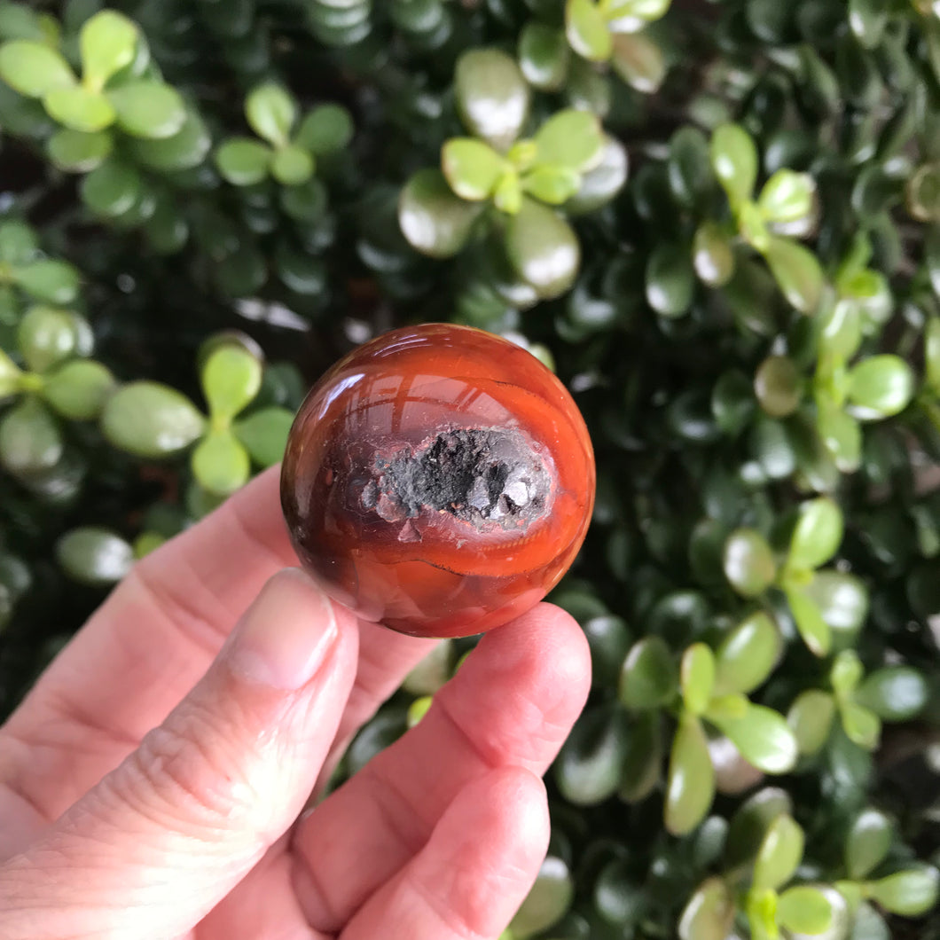 A deeply coloured sphere of Carnelian with a natural blemish which makes it look a bit like an eye.