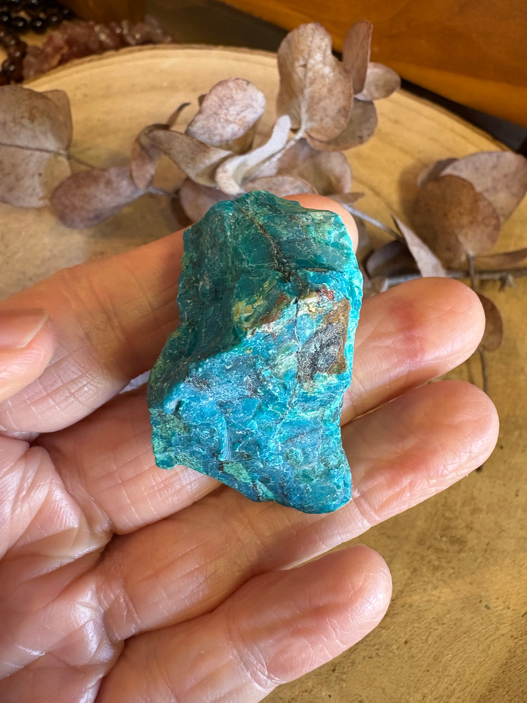 A cute little raw chunk of Chrysocolla, very colourful and a nice little specimen.
