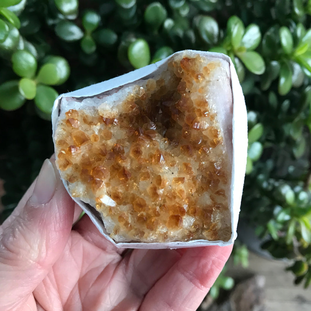 This is a bit of a curvy and sparkly Citrine cluster (of the heat treated Amethyst variety).