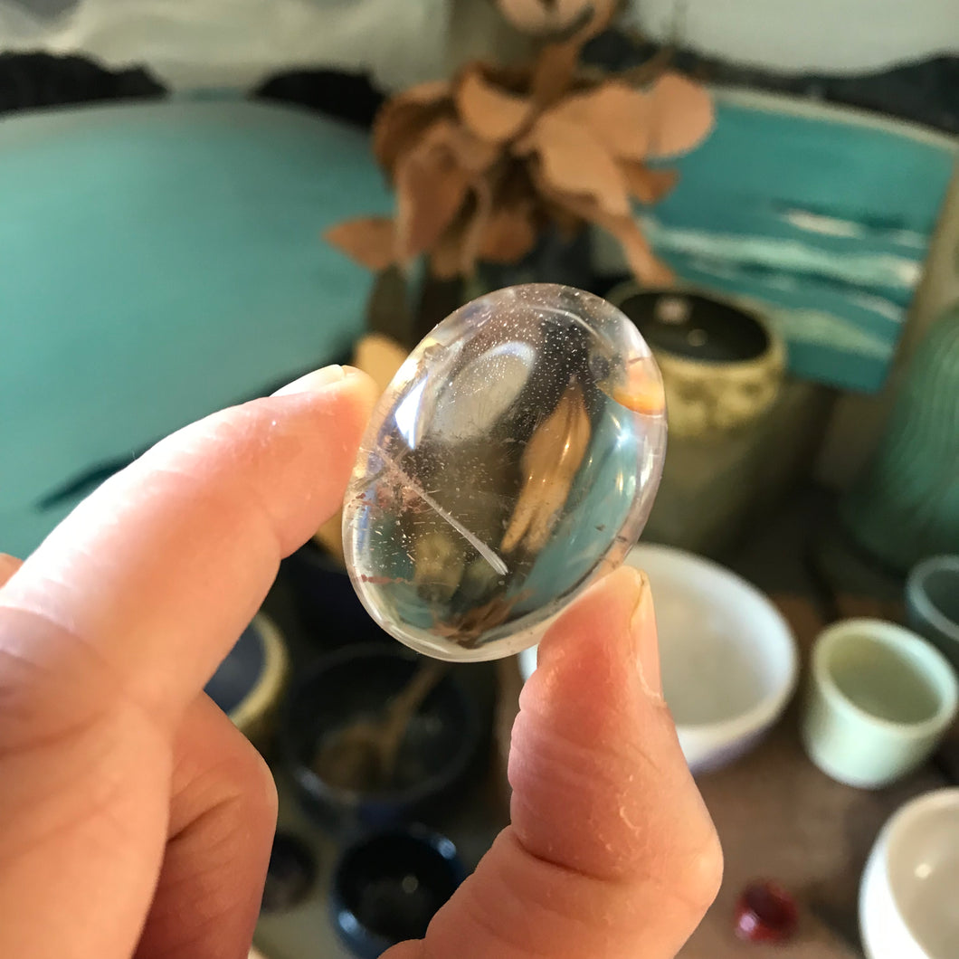 This little beauty caught my eye due to the mineral inclusion in one corner which when marvelled at, made me discover the rainbow on the other side!