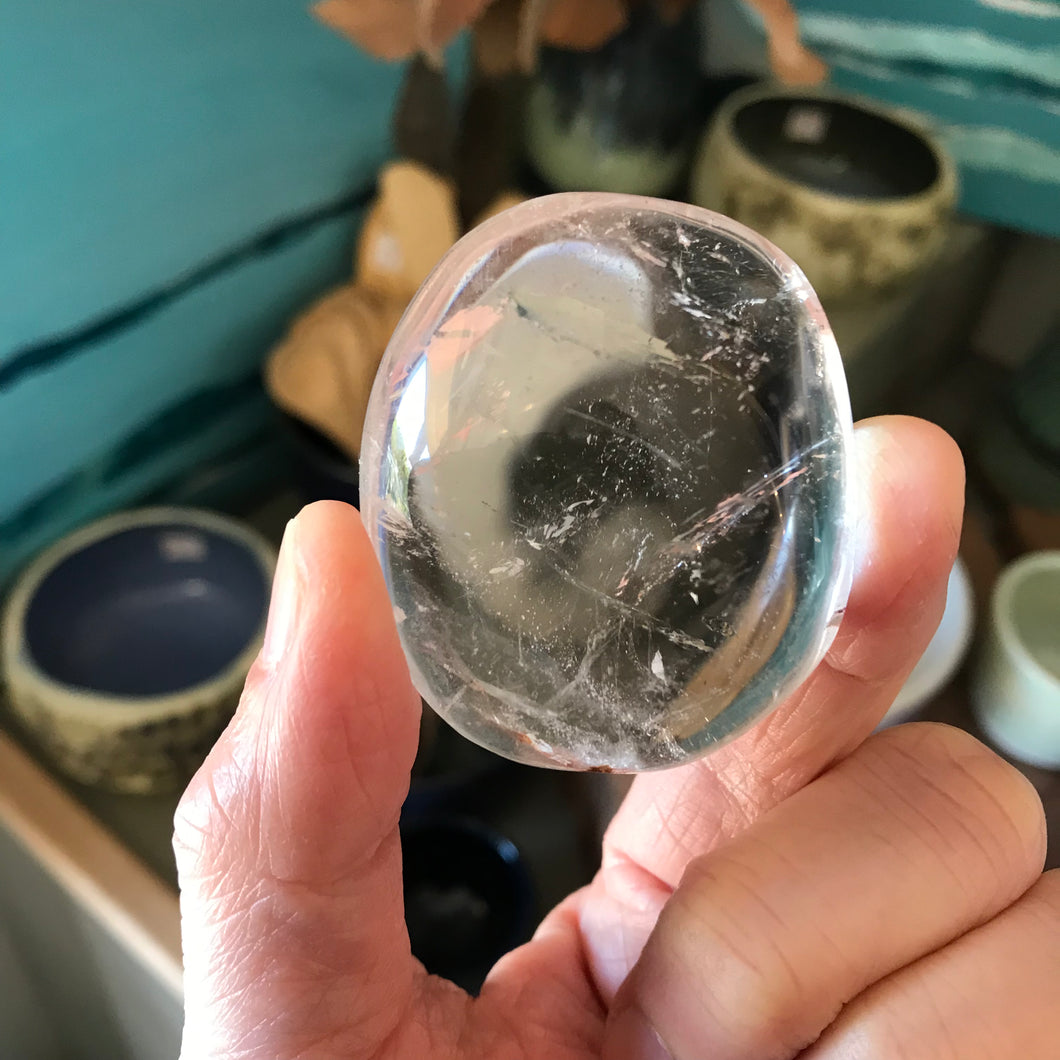 A nicely sized palm stone, full of light and a little mineral inclusion too.