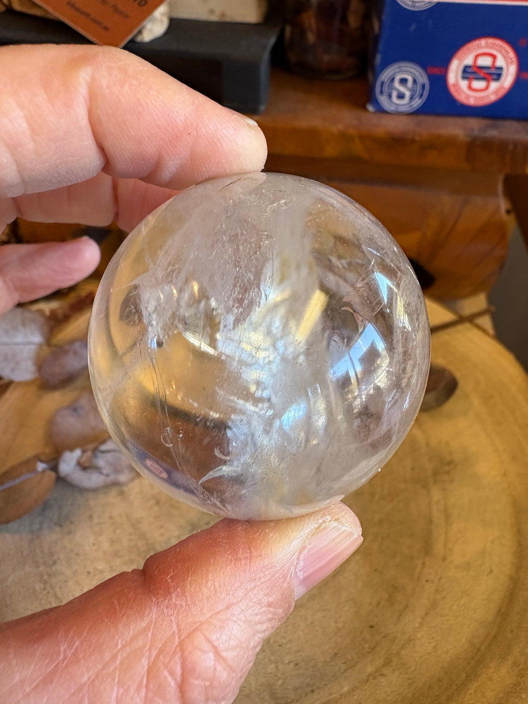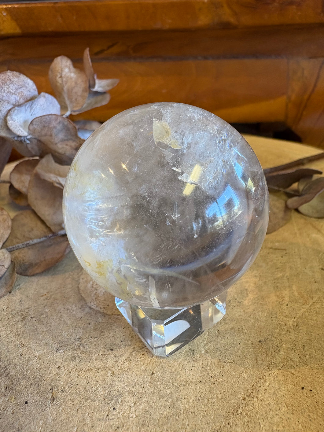 A beautiful Clear Quartz sphere with amazing clarity, rainbows and a little dot of colour here and there.