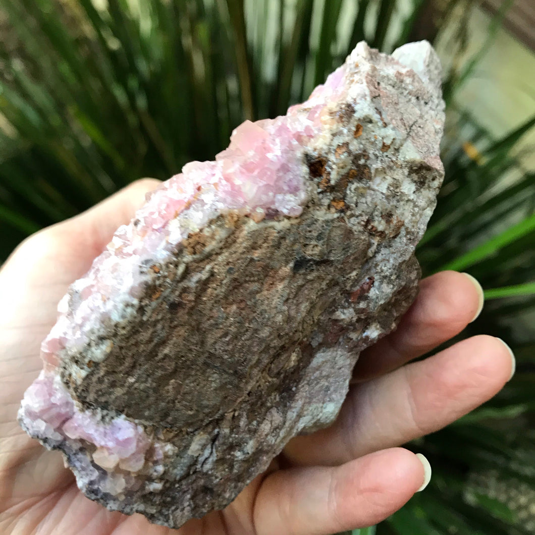This beauty has a soft pink colour Cobalto Calcite crystal caught across its surface and around its sides.