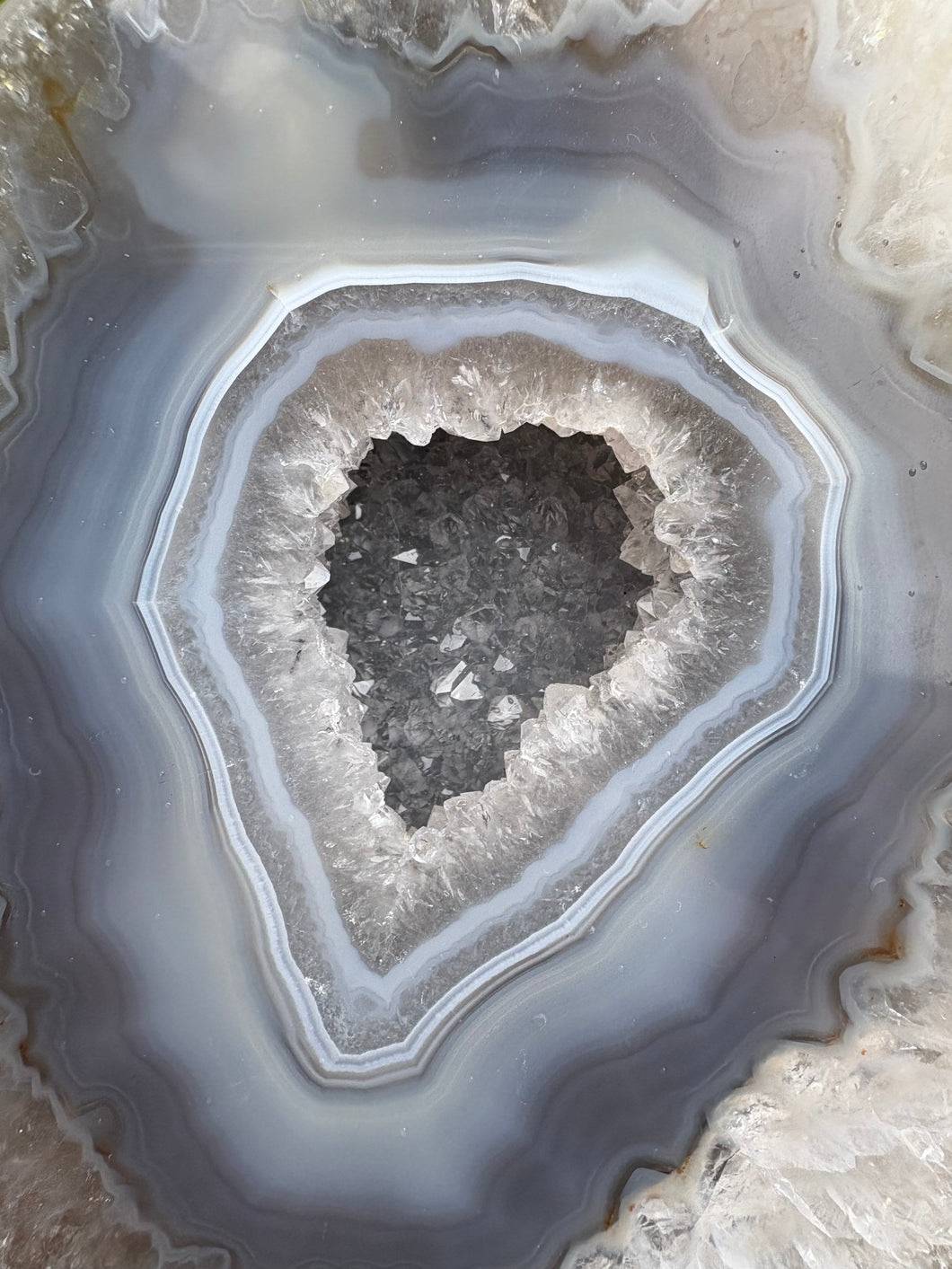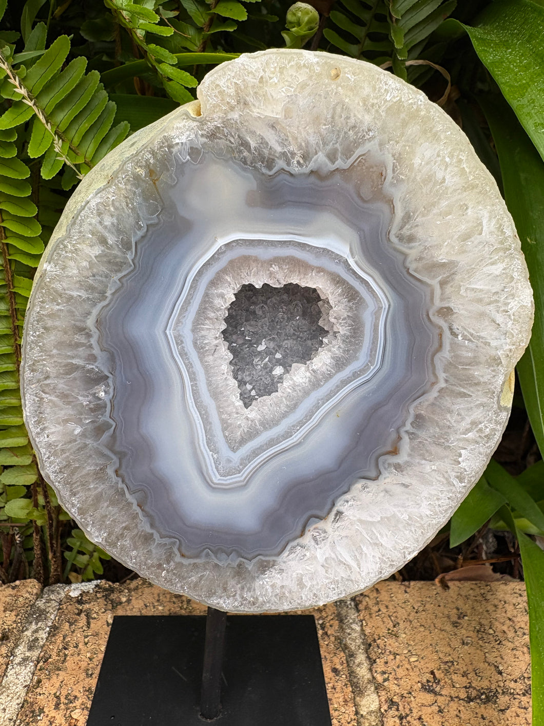 A bit of a beauty with gorgeous Agate banding and a sparkly Druzy centre.