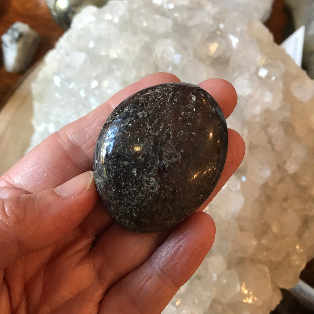 This is a nice sized palm stone of Garnet which is thought to be grounding in energy, and is also referred to as the ‘stone of success’.