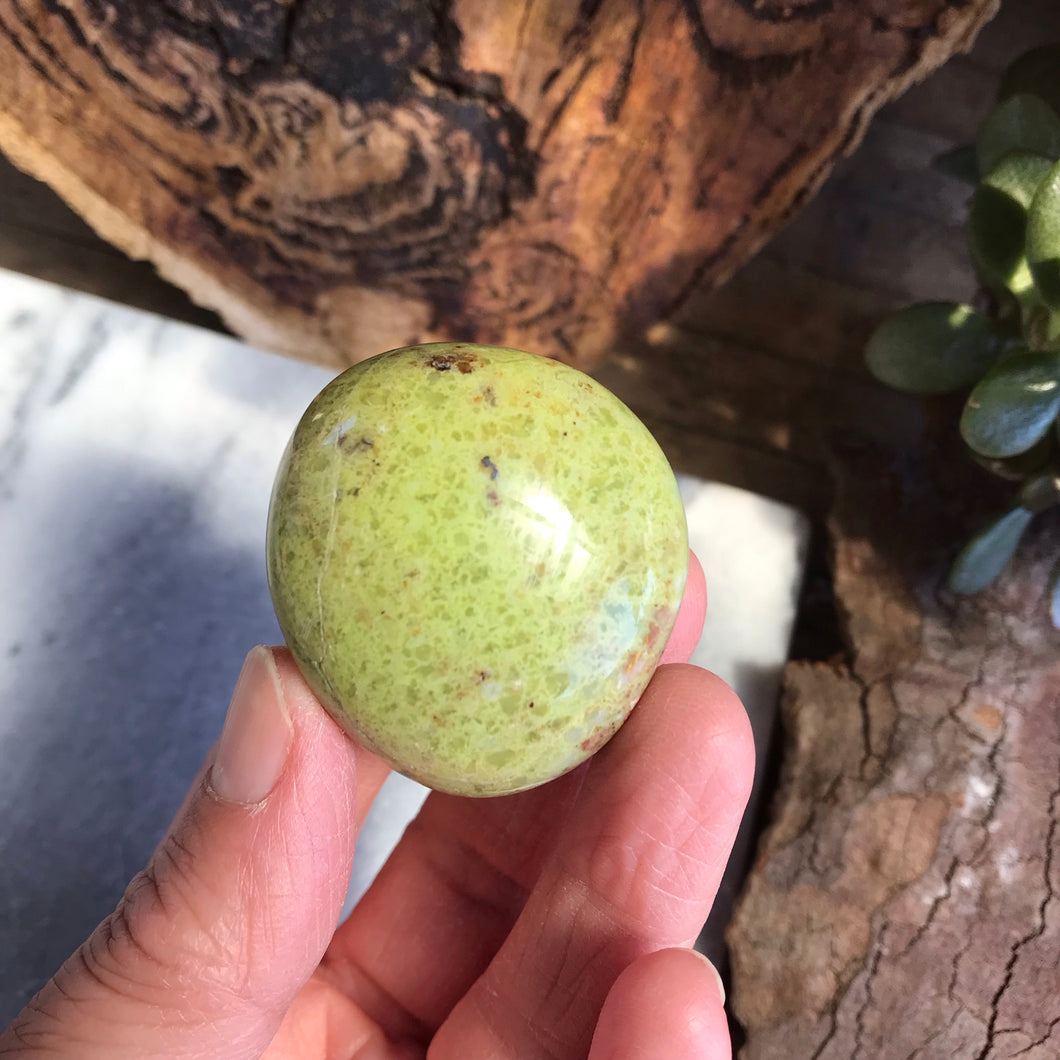 This lovely palm stone is of Green Opal sourced from Madagascar.