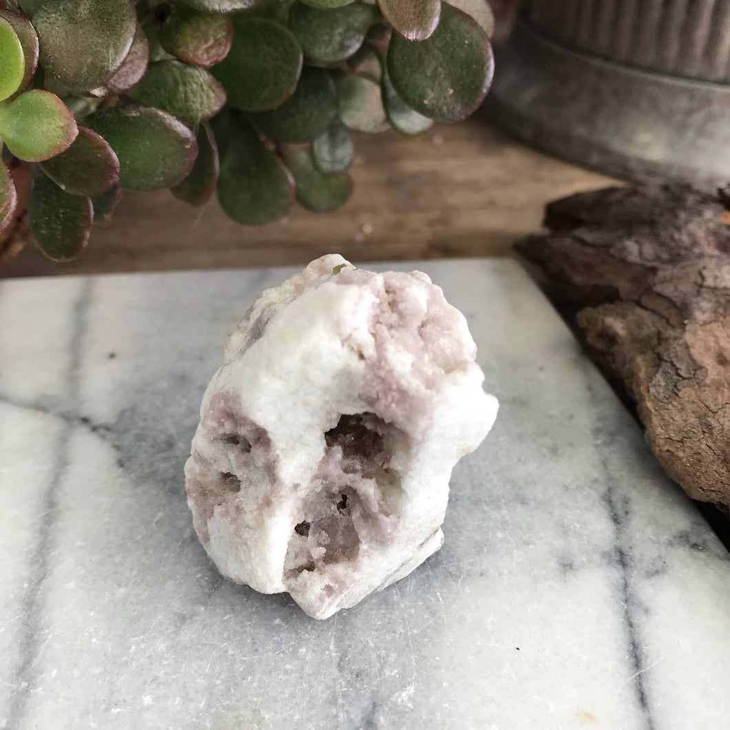 A cute little piece with some Green Tourmaline at its top and Lepidolite running around it’s body.